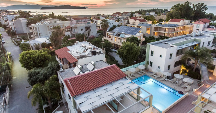 Located in the seaside resort of Agii Apostoli, Athina Beach is a modern hotel with a swimming pool, which includes a bar and a terrace with sun loungers. An essential feature of the multi-level architecture, which takes full advantage of the abundant sunshine of Crete. It has a pool and a cozy bar with local and exotic drinks and snacks. The exterior spaces are decorated with colorful flowers to make a very enjoyable stay. It is just a few meters from a large urban car park. The self-catering studios and apartments at Athina Beach feature an LCD TV with satellite channels. Free Wi-Fi and wired internet access are provided free of charge as well as air conditioning. Each accommodation has a well-equipped kitchenette with a refrigerator. For an extra charge guests will receive a safe box. The hotel consists of 15 double rooms and 12 single rooms, 2 of them specially designed, for people with disabilities. Each apartment has air conditioning, satellite and digital TV, internet connection and is fully equipped with refrigerator, kitchenette, sink and kitchen utensils.