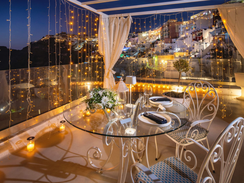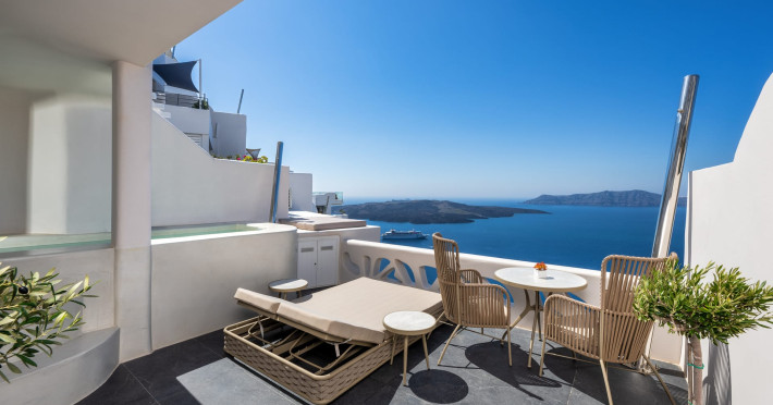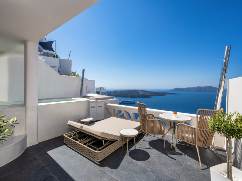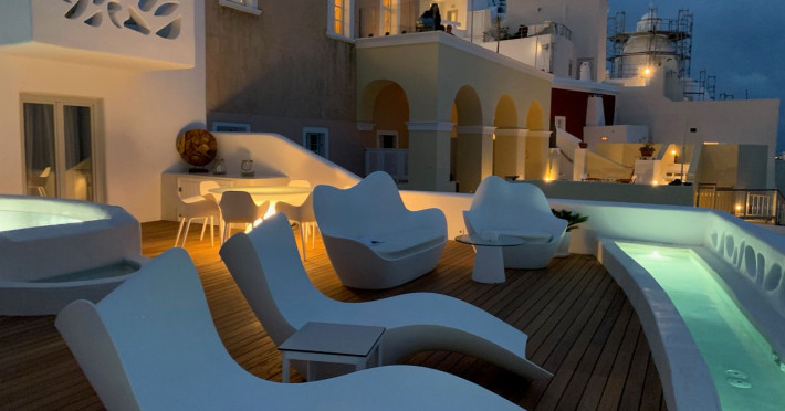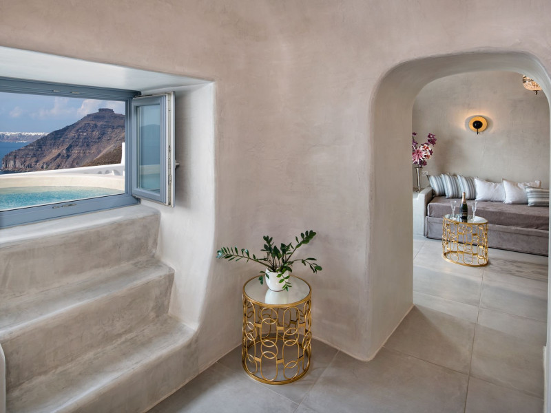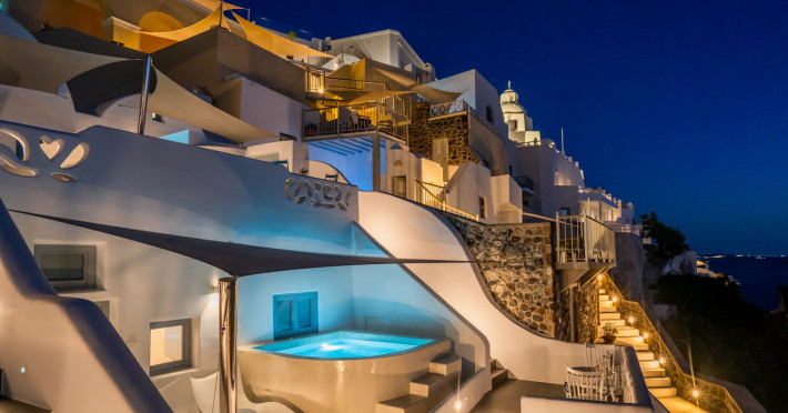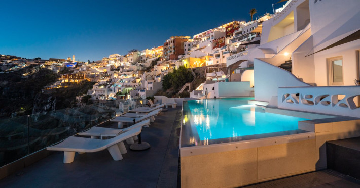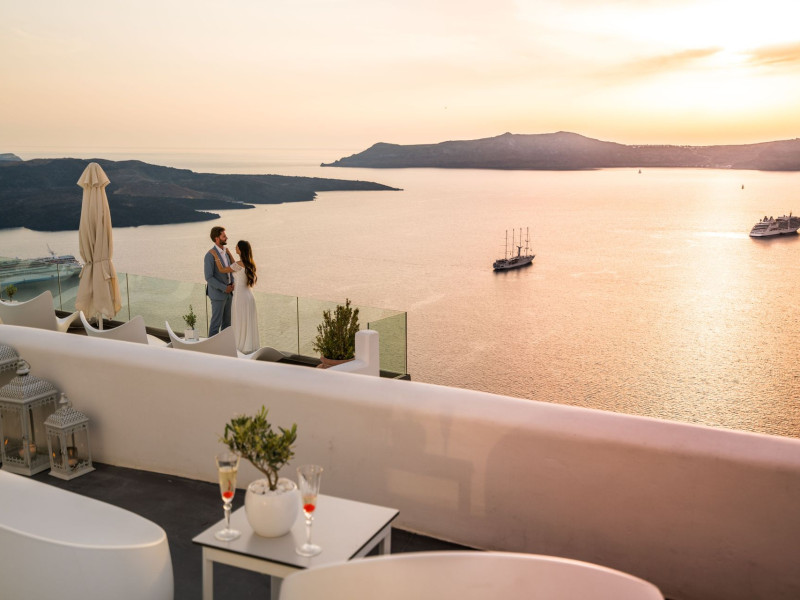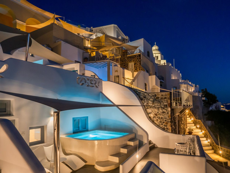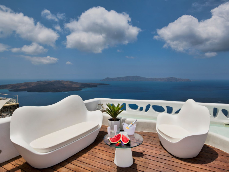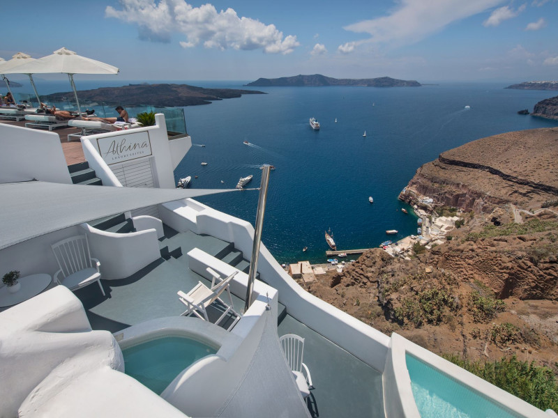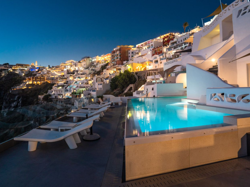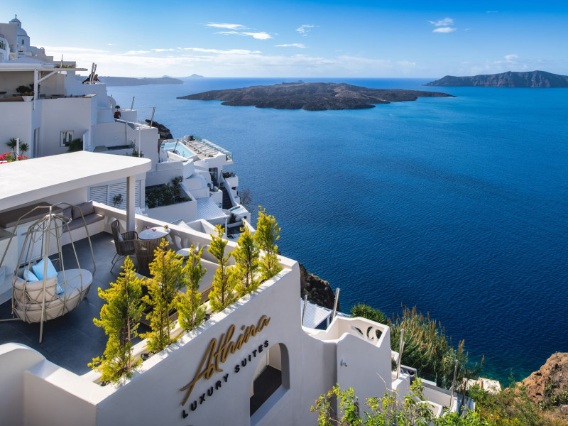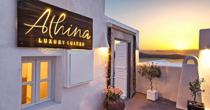 Situated at the most privileged location of Fira, on the cliffs of the caldera with unlimited views of the famous volcano, the sunset and the whole island, only a few steps away from the centre of Fira, but still with a quiet and relaxing atmosphere, Athina Luxury Suites is the place to stay in Santorini.Fully renovated in 2023 with exclusive materials, minimal design, upgraded services and rich amenities for those who want to enjoy privacy, high class services, comfort and luxury, always with the majestic scenery of Santorini’s caldera from every spot of the hotel.Athina Luxury Suites consists of three Junior Suites for 2 people each, two Master Loft Suites, loft style for up to 3 people, four Deluxe Suites with separate bedroom and living room up to 4 people, six Honeymoon Suites, strictly for couples with heated jacuzzis on their balconies and steam baths inside the room, two Superior Suites with outdoor jacuzzis on their private balconies for 2 people, two Junior Cave Suites with their private balconies and amazing views, one Petit Cave Suite with the large outdoor jacuzzi, ideal for couples, one Cave Suite for up to 4 people with a very large outdoor jacuzzi pool, one Cave Honeymoon Suite with indoor and outdoor jacuzzis for couples, the Black Rock Honeymoon Suite with private pool for 2 people and finally the Grand Cave Suite with the big loft, indoor and outdoor heated jacuzzis for up to 4 people, ideal for families, friends and couples. Finally, the unique and exclusive Royal Suite is actually a 140 square meters private villa in the hotel, with a large heated jacuzzi pool on the private balcony, rare and precious pieces of art and furniture for up to 6 people.All our suites are equipped with LCD Sat TVs 42” and 32” (or wider), desk, bluetooth speakers, tablet PCs, free wifi connection, telephone, laptop size safe box, mini-bar, ironing facilities, hairdryers, scales, beauty mirrors, fine Guy Laroche linens, towels and bathrobes for every guest, slippers, luxury Hermes, Guerlain or Ferragamo cosmetics, pool towels and much more.The large infinity heated swimming pool on the cliff offers a unique experience swimming and enjoying all the view from Oia to Akrotiri, a pool to infinity with a bar in the water open all day until the sunset hours.The in-room dining offers an extended menu with a wide list of drinks and food. Drinks are available 24 hours and our kitchen is open from 11:30 ‘till midnight.The Esperisma Bar-Restaurant which is located in the hotel’s upper balcony is open all day offering the most refreshing signature cocktails, serving some carefully selected dishes combined with a list of fine wines and champagnes especially during the sunset 'till the late hours. Private candlelight dinner options are available on request for special occasions. Just ask for our special menus.The Aphrodite SPA in the hotel offers relaxation massages, treatments, body and face therapies, with a cave aesthetics and relaxed at- mosphere.Athina Luxury Suites is the ideal location to have your dream wedding ceremony and venue facing an amazingly romantic scenery or just to enjoy your honeymoon in our special Honeymoon Suites with outdoor jacuzzis.Our joy is to offer leisure and delight and to make the accommodation of every guest personalised, exclusive and unforgettable, emphasis- ing individuality and privacy.Our concierge and front desks are 24-hours open, to every demand and request, arranging VIP excursions, transfers, car rentals, yacht rentals, helicopter rides, private dinners and every other need or request for our loyal guests.Situated at the most privileged location of Fira, on the cliffs of the caldera with unlimited views of the famous volcano, the sunset and the whole island, only a few steps away from the centre of Fira, but still with a quiet and relaxing atmosphere, Athina Luxury Suites is the place to stay in Santorini.Fully renovated in 2023 with exclusive materials, minimal design, upgraded services and rich amenities for those who want to enjoy privacy, high class services, comfort and luxury, always with the majestic scenery of Santorini’s caldera from every spot of the hotel.Athina Luxury Suites consists of three Junior Suites for 2 people each, two Master Loft Suites, loft style for up to 3 people, four Deluxe Suites with separate bedroom and living room up to 4 people, six Honeymoon Suites, strictly for couples with heated jacuzzis on their balconies and steam baths inside the room, two Superior Suites with outdoor jacuzzis on their private balconies for 2 people, two Junior Cave Suites with their private balconies and amazing views, one Petit Cave Suite with the large outdoor jacuzzi, ideal for couples, one Cave Suite for up to 4 people with a very large outdoor jacuzzi pool, one Cave Honeymoon Suite with indoor and outdoor jacuzzis for couples, the Black Rock Honeymoon Suite with private pool for 2 people and finally the Grand Cave Suite with the big loft, indoor and outdoor heated jacuzzis for up to 4 people, ideal for families, friends and couples. Finally, the unique and exclusive Royal Suite is actually a 140 square meters private villa in the hotel, with a large heated jacuzzi pool on the private balcony, rare and precious pieces of art and furniture for up to 6 people.All our suites are equipped with LCD Sat TVs 42” and 32” (or wider), desk, bluetooth speakers, tablet PCs, free wifi connection, telephone, laptop size safe box, mini-bar, ironing facilities, hairdryers, scales, beauty mirrors, fine Guy Laroche linens, towels and bathrobes for every guest, slippers, luxury Hermes, Guerlain or Ferragamo cosmetics, pool towels and much more.The large infinity heated swimming pool on the cliff offers a unique experience swimming and enjoying all the view from Oia to Akrotiri, a pool to infinity with a bar in the water open all day until the sunset hours.The in-room dining offers an extended menu with a wide list of drinks and food. Drinks are availabl
