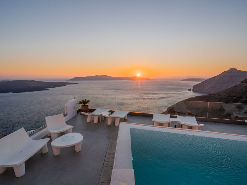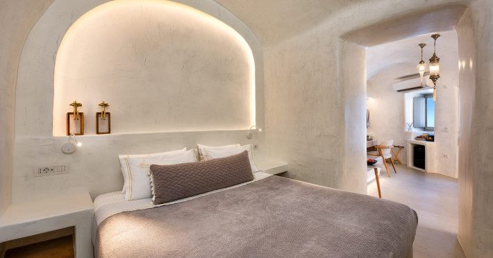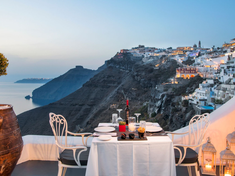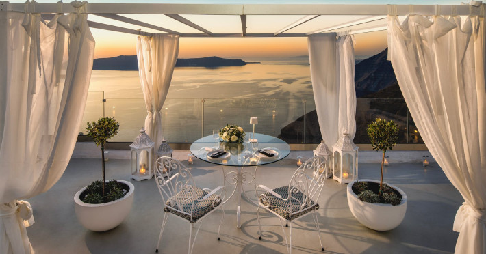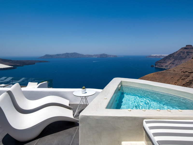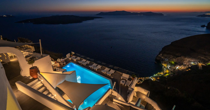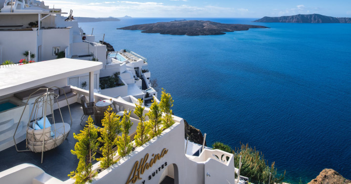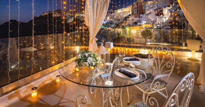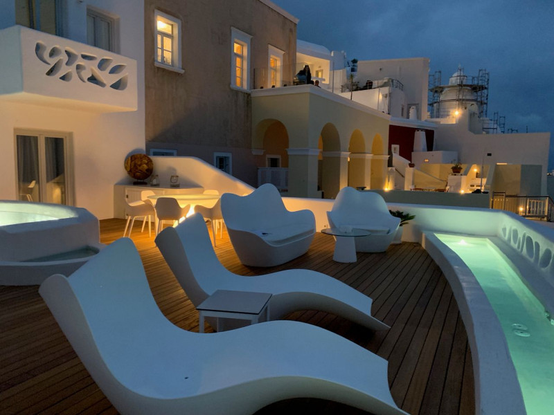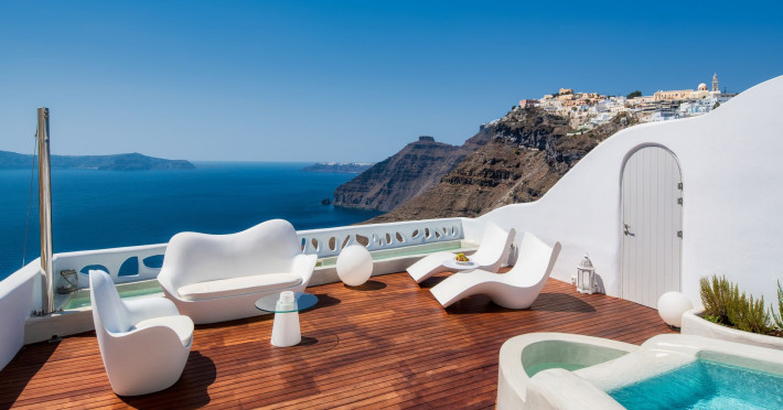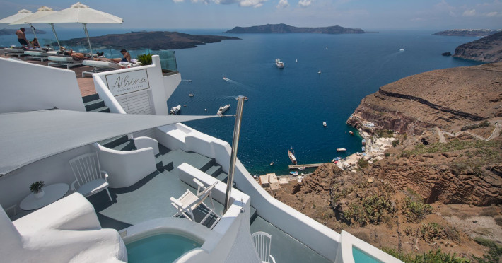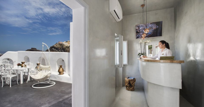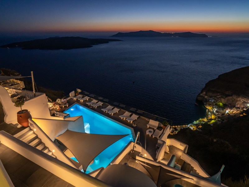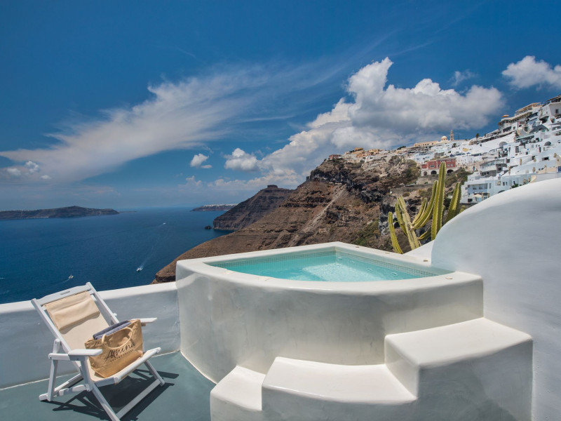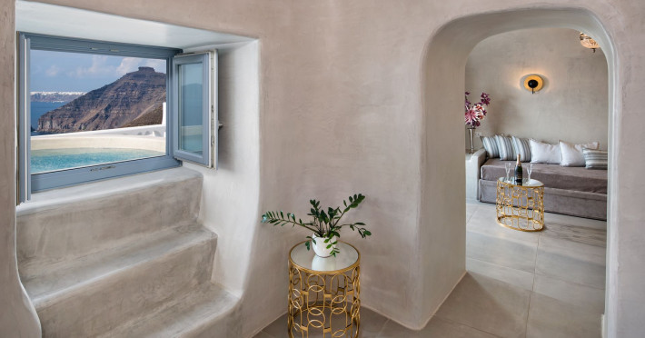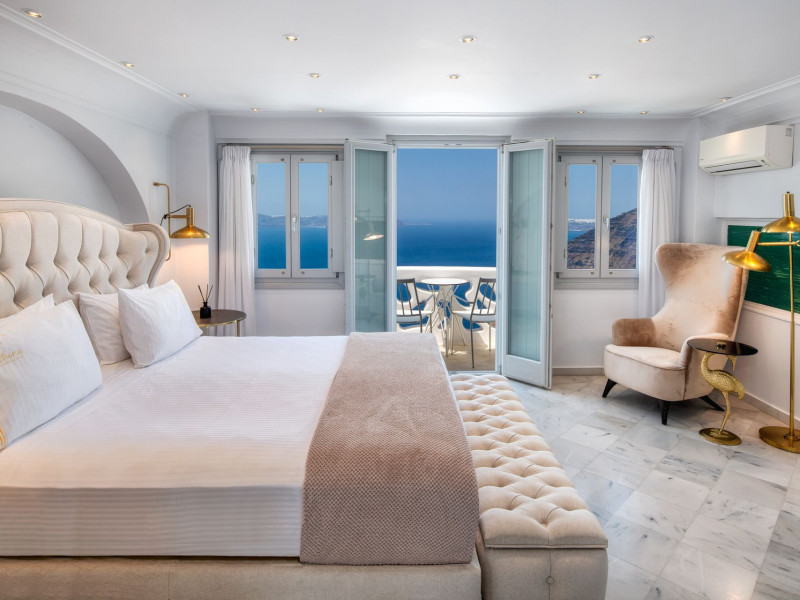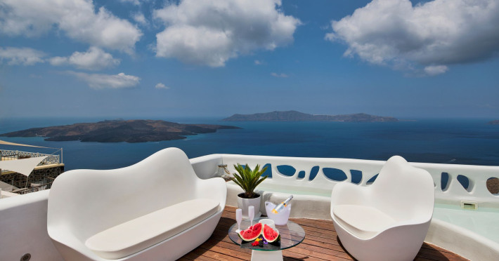 Situated at the most privileged location of Fira, on the cliffs of the caldera with unlimited views of the famous volcano, the sunset and the whole island, only a few steps away from the centre of Fira, but still with a quiet and relaxing atmosphere, Athina Luxury Suites is the place to stay in Santorini.Fully renovated in 2023 with exclusive materials, minimal design, upgraded services and rich amenities for those who want to enjoy privacy, high class services, comfort and luxury, always with the majestic scenery of Santorini’s caldera from every spot of the hotel.Athina Luxury Suites consists of three Junior Suites for 2 people each, two Master Loft Suites, loft style for up to 3 people, four Deluxe Suites with separate bedroom and living room up to 4 people, six Honeymoon Suites, strictly for couples with heated jacuzzis on their balconies and steam baths inside the room, two Superior Suites with outdoor jacuzzis on their private balconies for 2 people, two Junior Cave Suites with their private balconies and amazing views, one Petit Cave Suite with the large outdoor jacuzzi, ideal for couples, one Cave Suite for up to 4 people with a very large outdoor jacuzzi pool, one Cave Honeymoon Suite with indoor and outdoor jacuzzis for couples, the Black Rock Honeymoon Suite with private pool for 2 people and finally the Grand Cave Suite with the big loft, indoor and outdoor heated jacuzzis for up to 4 people, ideal for families, friends and couples. Finally, the unique and exclusive Royal Suite is actually a 140 square meters private villa in the hotel, with a large heated jacuzzi pool on the private balcony, rare and precious pieces of art and furniture for up to 6 people.All our suites are equipped with LCD Sat TVs 42” and 32” (or wider), desk, bluetooth speakers, tablet PCs, free wifi connection, telephone, laptop size safe box, mini-bar, ironing facilities, hairdryers, scales, beauty mirrors, fine Guy Laroche linens, towels and bathrobes for every guest, slippers, luxury Hermes, Guerlain or Ferragamo cosmetics, pool towels and much more.The large infinity heated swimming pool on the cliff offers a unique experience swimming and enjoying all the view from Oia to Akrotiri, a pool to infinity with a bar in the water open all day until the sunset hours.The in-room dining offers an extended menu with a wide list of drinks and food. Drinks are available 24 hours and our kitchen is open from 11:30 ‘till midnight.The Esperisma Bar-Restaurant which is located in the hotel’s upper balcony is open all day offering the most refreshing signature cocktails, serving some carefully selected dishes combined with a list of fine wines and champagnes especially during the sunset 'till the late hours. Private candlelight dinner options are available on request for special occasions. Just ask for our special menus.The Aphrodite SPA in the hotel offers relaxation massages, treatments, body and face therapies, with a cave aesthetics and relaxed at- mosphere.Athina Luxury Suites is the ideal location to have your dream wedding ceremony and venue facing an amazingly romantic scenery or just to enjoy your honeymoon in our special Honeymoon Suites with outdoor jacuzzis.Our joy is to offer leisure and delight and to make the accommodation of every guest personalised, exclusive and unforgettable, emphasis- ing individuality and privacy.Our concierge and front desks are 24-hours open, to every demand and request, arranging VIP excursions, transfers, car rentals, yacht rentals, helicopter rides, private dinners and every other need or request for our loyal guests.Situated at the most privileged location of Fira, on the cliffs of the caldera with unlimited views of the famous volcano, the sunset and the whole island, only a few steps away from the centre of Fira, but still with a quiet and relaxing atmosphere, Athina Luxury Suites is the place to stay in Santorini.Fully renovated in 2023 with exclusive materials, minimal design, upgraded services and rich amenities for those who want to enjoy privacy, high class services, comfort and luxury, always with the majestic scenery of Santorini’s caldera from every spot of the hotel.Athina Luxury Suites consists of three Junior Suites for 2 people each, two Master Loft Suites, loft style for up to 3 people, four Deluxe Suites with separate bedroom and living room up to 4 people, six Honeymoon Suites, strictly for couples with heated jacuzzis on their balconies and steam baths inside the room, two Superior Suites with outdoor jacuzzis on their private balconies for 2 people, two Junior Cave Suites with their private balconies and amazing views, one Petit Cave Suite with the large outdoor jacuzzi, ideal for couples, one Cave Suite for up to 4 people with a very large outdoor jacuzzi pool, one Cave Honeymoon Suite with indoor and outdoor jacuzzis for couples, the Black Rock Honeymoon Suite with private pool for 2 people and finally the Grand Cave Suite with the big loft, indoor and outdoor heated jacuzzis for up to 4 people, ideal for families, friends and couples. Finally, the unique and exclusive Royal Suite is actually a 140 square meters private villa in the hotel, with a large heated jacuzzi pool on the private balcony, rare and precious pieces of art and furniture for up to 6 people.All our suites are equipped with LCD Sat TVs 42” and 32” (or wider), desk, bluetooth speakers, tablet PCs, free wifi connection, telephone, laptop size safe box, mini-bar, ironing facilities, hairdryers, scales, beauty mirrors, fine Guy Laroche linens, towels and bathrobes for every guest, slippers, luxury Hermes, Guerlain or Ferragamo cosmetics, pool towels and much more.The large infinity heated swimming pool on the cliff offers a unique experience swimming and enjoying all the view from Oia to Akrotiri, a pool to infinity with a bar in the water open all day until the sunset hours.The in-room dining offers an extended menu with a wide list of drinks and food. Drinks are availabl