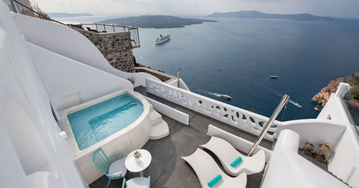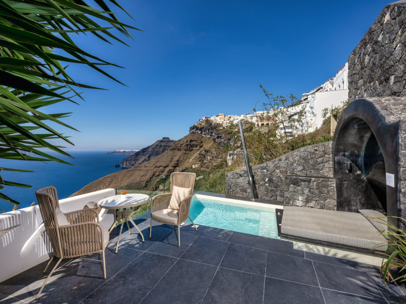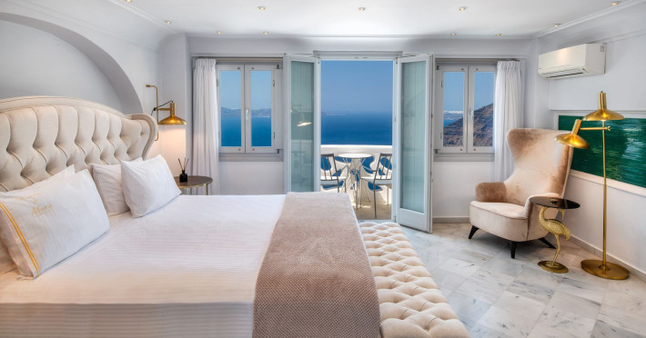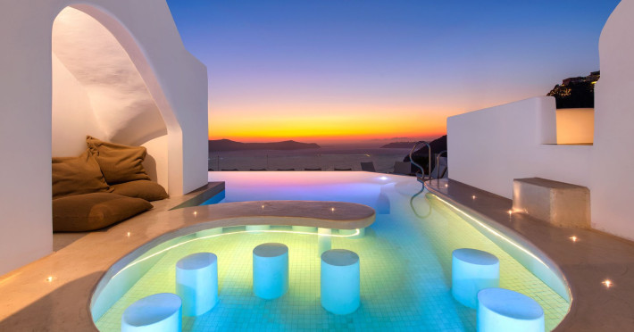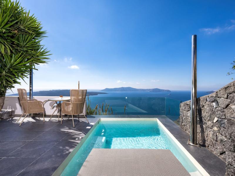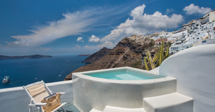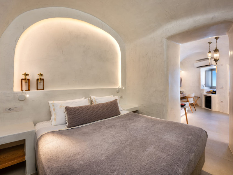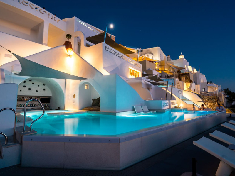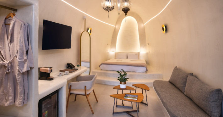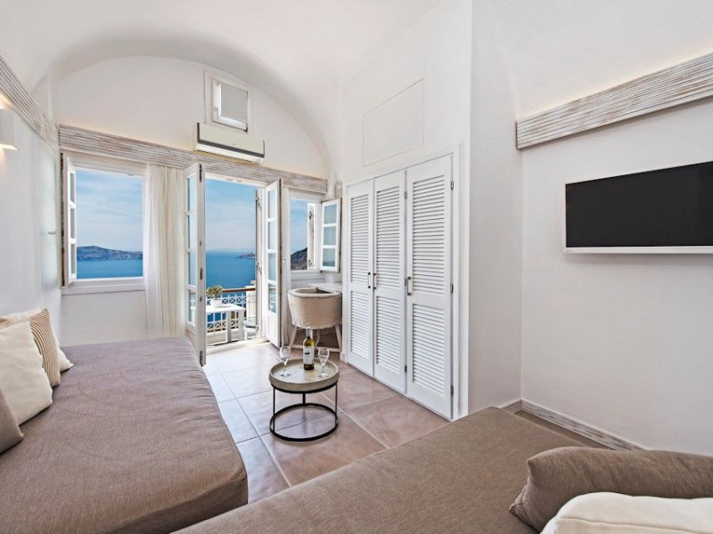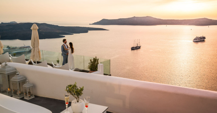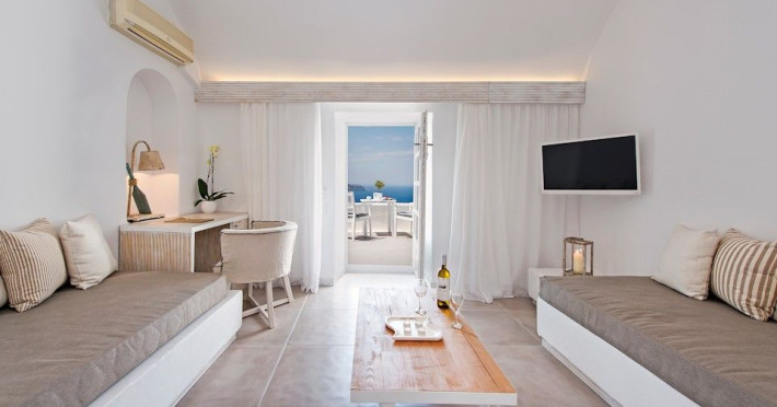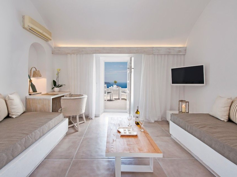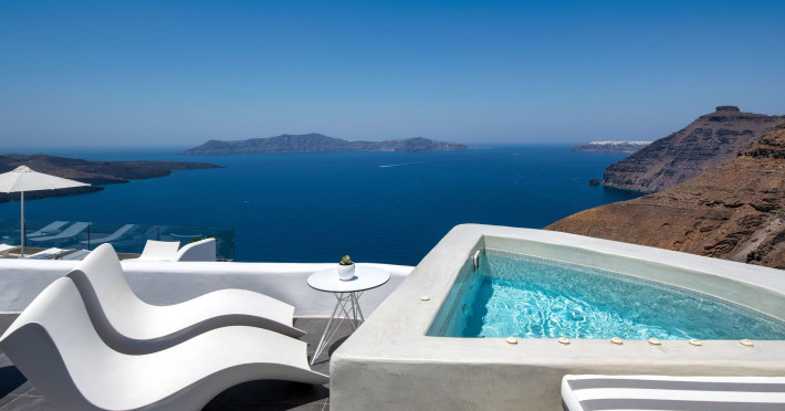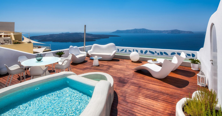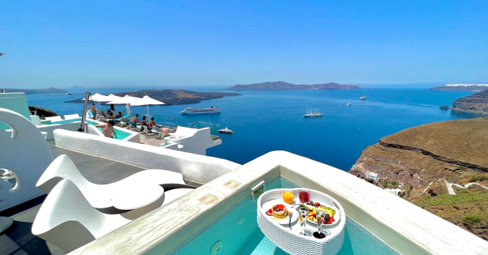Situated at the most privileged location of Fira, on the cliffs of the caldera with unlimited views of the famous volcano, the sunset and the whole island, only a few steps away from the centre of Fira, but still with a quiet and relaxing atmosphere, Athina Luxury Suites is the place to stay in Santorini.Fully renovated in 2023 with exclusive materials, minimal design, upgraded services and rich amenities for those who want to enjoy privacy, high class services, comfort and luxury, always with the majestic scenery of Santorini’s caldera from every spot of the hotel.Athina Luxury Suites consists of three Junior Suites for 2 people each, two Master Loft Suites, loft style for up to 3 people, four Deluxe Suites with separate bedroom and living room up to 4 people, six Honeymoon Suites, strictly for couples with heated jacuzzis on their balconies and steam baths inside the room, two Superior Suites with outdoor jacuzzis on their private balconies for 2 people, two Junior Cave Suites with their private balconies and amazing views, one Petit Cave Suite with the large outdoor jacuzzi, ideal for couples, one Cave Suite for up to 4 people with a very large outdoor jacuzzi pool, one Cave Honeymoon Suite with indoor and outdoor jacuzzis for couples, the Black Rock Honeymoon Suite with private pool for 2 people and finally the Grand Cave Suite with the big loft, indoor and outdoor heated jacuzzis for up to 4 people, ideal for families, friends and couples. Finally, the unique and exclusive Royal Suite is actually a 140 square meters private villa in the hotel, with a large heated jacuzzi pool on the private balcony, rare and precious pieces of art and furniture for up to 6 people.All our suites are equipped with LCD Sat TVs 42” and 32” (or wider), desk, bluetooth speakers, tablet PCs, free wifi connection, telephone, laptop size safe box, mini-bar, ironing facilities, hairdryers, scales, beauty mirrors, fine Guy Laroche linens, towels and bathrobes for every guest, slippers, luxury Hermes, Guerlain or Ferragamo cosmetics, pool towels and much more.The large infinity heated swimming pool on the cliff offers a unique experience swimming and enjoying all the view from Oia to Akrotiri, a pool to infinity with a bar in the water open all day until the sunset hours.The in-room dining offers an extended menu with a wide list of drinks and food. Drinks are available 24 hours and our kitchen is open from 11:30 ‘till midnight.The Esperisma Bar-Restaurant which is located in the hotel’s upper balcony is open all day offering the most refreshing signature cocktails, serving some carefully selected dishes combined with a list of fine wines and champagnes especially during the sunset 'till the late hours. Private candlelight dinner options are available on request for special occasions. Just ask for our special menus.The Aphrodite SPA in the hotel offers relaxation massages, treatments, body and face therapies, with a cave aesthetics and relaxed at- mosphere.Athina Luxury Suites is the ideal location to have your dream wedding ceremony and venue facing an amazingly romantic scenery or just to enjoy your honeymoon in our special Honeymoon Suites with outdoor jacuzzis.Our joy is to offer leisure and delight and to make the accommodation of every guest personalised, exclusive and unforgettable, emphasis- ing individuality and privacy.Our concierge and front desks are 24-hours open, to every demand and request, arranging VIP excursions, transfers, car rentals, yacht rentals, helicopter rides, private dinners and every other need or request for our loyal guests.Situated at the most privileged location of Fira, on the cliffs of the caldera with unlimited views of the famous volcano, the sunset and the whole island, only a few steps away from the centre of Fira, but still with a quiet and relaxing atmosphere, Athina Luxury Suites is the place to stay in Santorini.Fully renovated in 2023 with exclusive materials, minimal design, upgraded services and rich amenities for those who want to enjoy privacy, high class services, comfort and luxury, always with the majestic scenery of Santorini’s caldera from every spot of the hotel.Athina Luxury Suites consists of three Junior Suites for 2 people each, two Master Loft Suites, loft style for up to 3 people, four Deluxe Suites with separate bedroom and living room up to 4 people, six Honeymoon Suites, strictly for couples with heated jacuzzis on their balconies and steam baths inside the room, two Superior Suites with outdoor jacuzzis on their private balconies for 2 people, two Junior Cave Suites with their private balconies and amazing views, one Petit Cave Suite with the large outdoor jacuzzi, ideal for couples, one Cave Suite for up to 4 people with a very large outdoor jacuzzi pool, one Cave Honeymoon Suite with indoor and outdoor jacuzzis for couples, the Black Rock Honeymoon Suite with private pool for 2 people and finally the Grand Cave Suite with the big loft, indoor and outdoor heated jacuzzis for up to 4 people, ideal for families, friends and couples. Finally, the unique and exclusive Royal Suite is actually a 140 square meters private villa in the hotel, with a large heated jacuzzi pool on the private balcony, rare and precious pieces of art and furniture for up to 6 people.All our suites are equipped with LCD Sat TVs 42” and 32” (or wider), desk, bluetooth speakers, tablet PCs, free wifi connection, telephone, laptop size safe box, mini-bar, ironing facilities, hairdryers, scales, beauty mirrors, fine Guy Laroche linens, towels and bathrobes for every guest, slippers, luxury Hermes, Guerlain or Ferragamo cosmetics, pool towels and much more.The large infinity heated swimming pool on the cliff offers a unique experience swimming and enjoying all the view from Oia to Akrotiri, a pool to infinity with a bar in the water open all day until the sunset hours.The in-room dining offers an extended menu with a wide list of drinks and food. Drinks are availabl