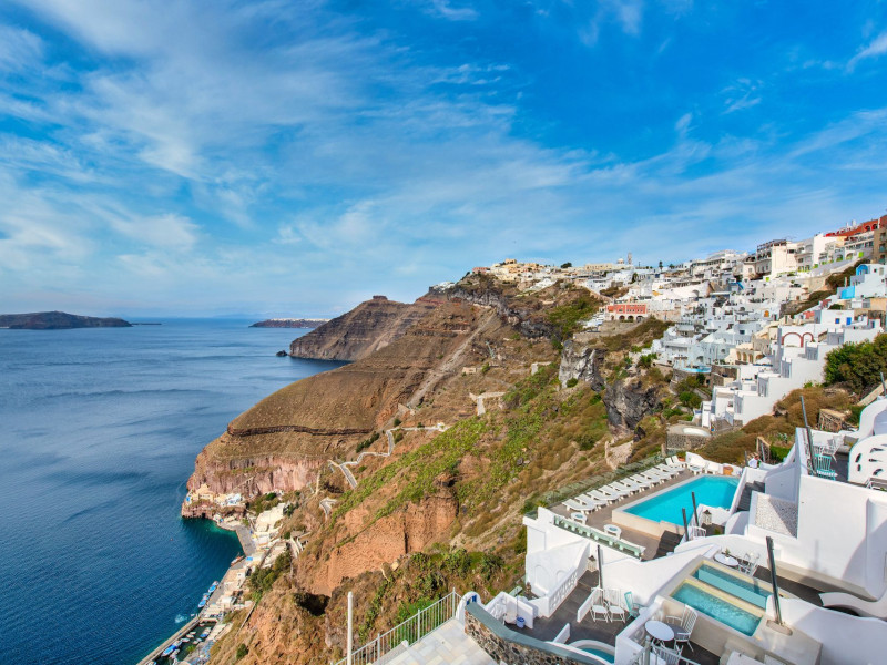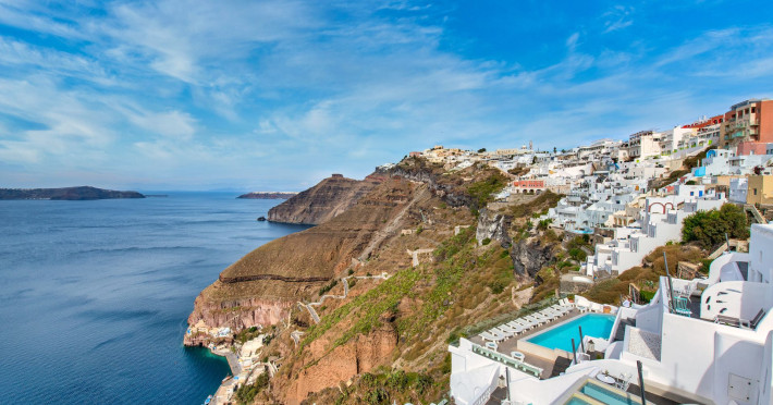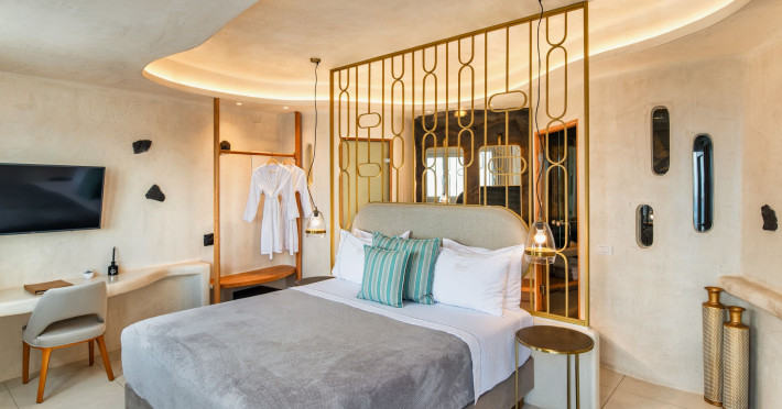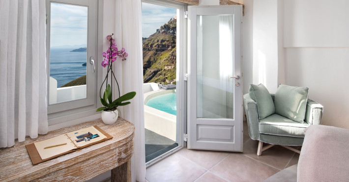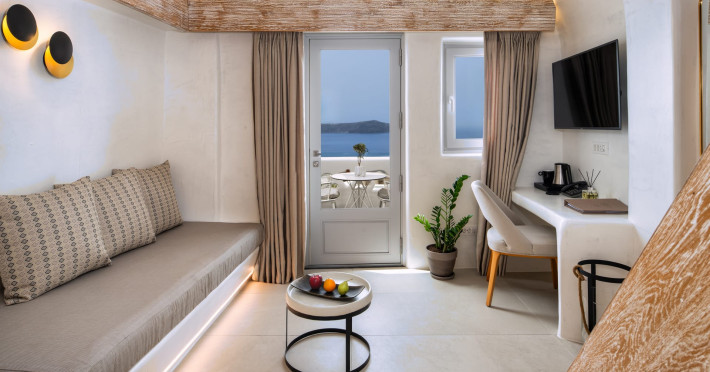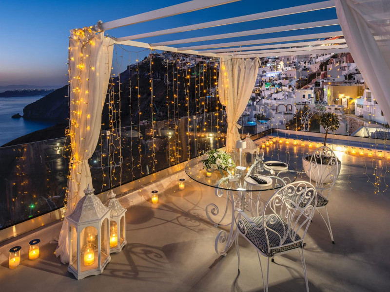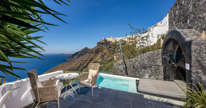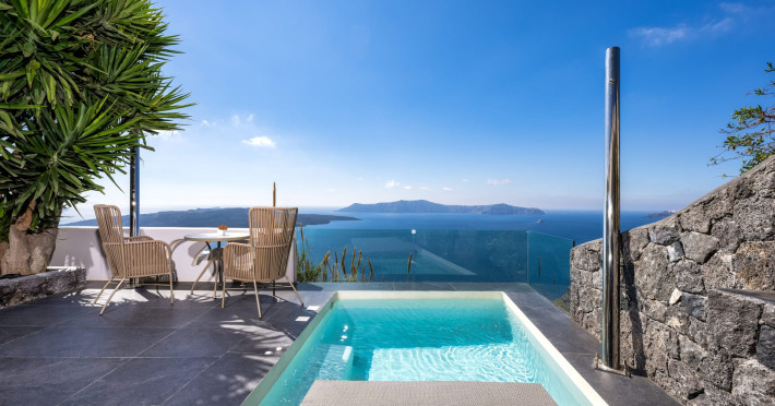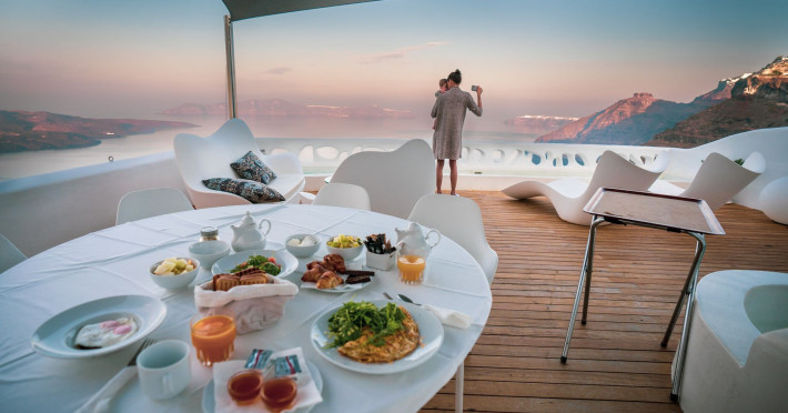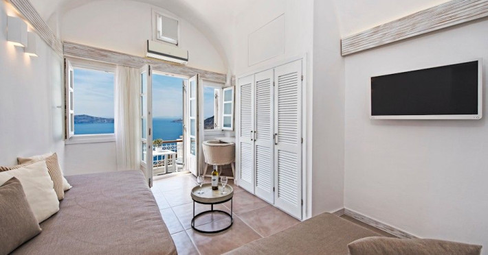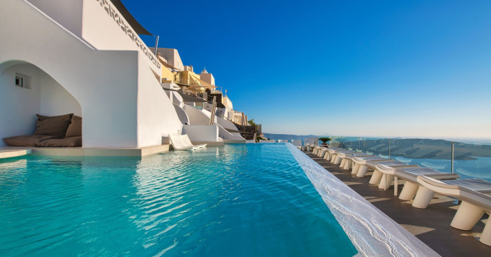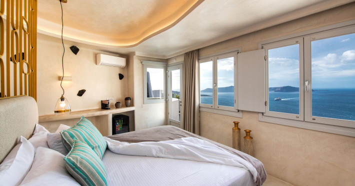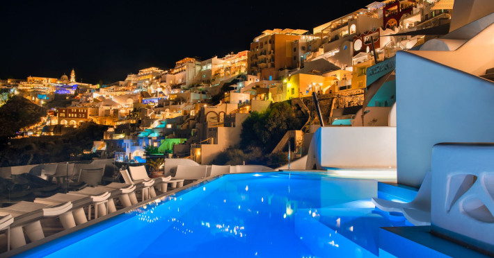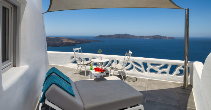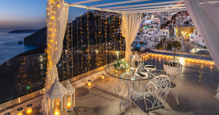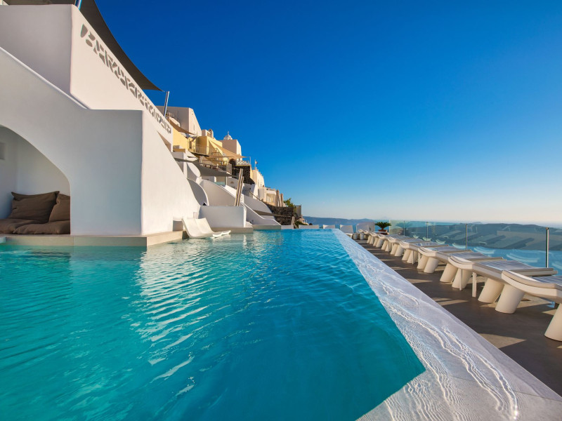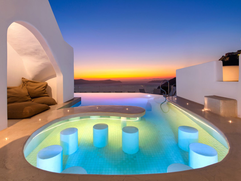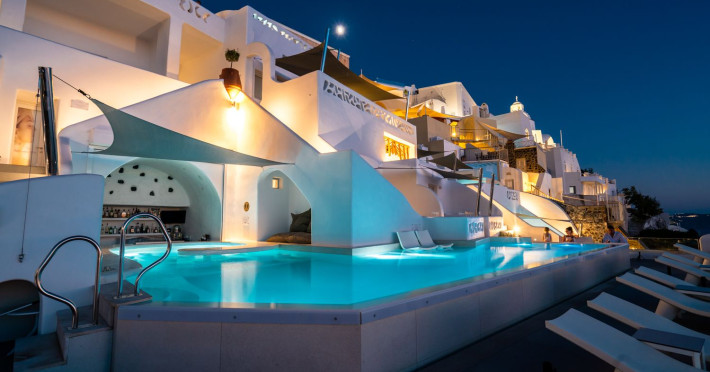 Situated at the most privileged location of Fira, on the cliffs of the caldera with unlimited views of the famous volcano, the sunset and the whole island, only a few steps away from the centre of Fira, but still with a quiet and relaxing atmosphere, Athina Luxury Suites is the place to stay in Santorini.Fully renovated in 2023 with exclusive materials, minimal design, upgraded services and rich amenities for those who want to enjoy privacy, high class services, comfort and luxury, always with the majestic scenery of Santorini’s caldera from every spot of the hotel.Athina Luxury Suites consists of three Junior Suites for 2 people each, two Master Loft Suites, loft style for up to 3 people, four Deluxe Suites with separate bedroom and living room up to 4 people, six Honeymoon Suites, strictly for couples with heated jacuzzis on their balconies and steam baths inside the room, two Superior Suites with outdoor jacuzzis on their private balconies for 2 people, two Junior Cave Suites with their private balconies and amazing views, one Petit Cave Suite with the large outdoor jacuzzi, ideal for couples, one Cave Suite for up to 4 people with a very large outdoor jacuzzi pool, one Cave Honeymoon Suite with indoor and outdoor jacuzzis for couples, the Black Rock Honeymoon Suite with private pool for 2 people and finally the Grand Cave Suite with the big loft, indoor and outdoor heated jacuzzis for up to 4 people, ideal for families, friends and couples. Finally, the unique and exclusive Royal Suite is actually a 140 square meters private villa in the hotel, with a large heated jacuzzi pool on the private balcony, rare and precious pieces of art and furniture for up to 6 people.All our suites are equipped with LCD Sat TVs 42” and 32” (or wider), desk, bluetooth speakers, tablet PCs, free wifi connection, telephone, laptop size safe box, mini-bar, ironing facilities, hairdryers, scales, beauty mirrors, fine Guy Laroche linens, towels and bathrobes for every guest, slippers, luxury Hermes, Guerlain or Ferragamo cosmetics, pool towels and much more.The large infinity heated swimming pool on the cliff offers a unique experience swimming and enjoying all the view from Oia to Akrotiri, a pool to infinity with a bar in the water open all day until the sunset hours.The in-room dining offers an extended menu with a wide list of drinks and food. Drinks are available 24 hours and our kitchen is open from 11:30 ‘till midnight.The Esperisma Bar-Restaurant which is located in the hotel’s upper balcony is open all day offering the most refreshing signature cocktails, serving some carefully selected dishes combined with a list of fine wines and champagnes especially during the sunset 'till the late hours. Private candlelight dinner options are available on request for special occasions. Just ask for our special menus.The Aphrodite SPA in the hotel offers relaxation massages, treatments, body and face therapies, with a cave aesthetics and relaxed at- mosphere.Athina Luxury Suites is the ideal location to have your dream wedding ceremony and venue facing an amazingly romantic scenery or just to enjoy your honeymoon in our special Honeymoon Suites with outdoor jacuzzis.Our joy is to offer leisure and delight and to make the accommodation of every guest personalised, exclusive and unforgettable, emphasis- ing individuality and privacy.Our concierge and front desks are 24-hours open, to every demand and request, arranging VIP excursions, transfers, car rentals, yacht rentals, helicopter rides, private dinners and every other need or request for our loyal guests.Situated at the most privileged location of Fira, on the cliffs of the caldera with unlimited views of the famous volcano, the sunset and the whole island, only a few steps away from the centre of Fira, but still with a quiet and relaxing atmosphere, Athina Luxury Suites is the place to stay in Santorini.Fully renovated in 2023 with exclusive materials, minimal design, upgraded services and rich amenities for those who want to enjoy privacy, high class services, comfort and luxury, always with the majestic scenery of Santorini’s caldera from every spot of the hotel.Athina Luxury Suites consists of three Junior Suites for 2 people each, two Master Loft Suites, loft style for up to 3 people, four Deluxe Suites with separate bedroom and living room up to 4 people, six Honeymoon Suites, strictly for couples with heated jacuzzis on their balconies and steam baths inside the room, two Superior Suites with outdoor jacuzzis on their private balconies for 2 people, two Junior Cave Suites with their private balconies and amazing views, one Petit Cave Suite with the large outdoor jacuzzi, ideal for couples, one Cave Suite for up to 4 people with a very large outdoor jacuzzi pool, one Cave Honeymoon Suite with indoor and outdoor jacuzzis for couples, the Black Rock Honeymoon Suite with private pool for 2 people and finally the Grand Cave Suite with the big loft, indoor and outdoor heated jacuzzis for up to 4 people, ideal for families, friends and couples. Finally, the unique and exclusive Royal Suite is actually a 140 square meters private villa in the hotel, with a large heated jacuzzi pool on the private balcony, rare and precious pieces of art and furniture for up to 6 people.All our suites are equipped with LCD Sat TVs 42” and 32” (or wider), desk, bluetooth speakers, tablet PCs, free wifi connection, telephone, laptop size safe box, mini-bar, ironing facilities, hairdryers, scales, beauty mirrors, fine Guy Laroche linens, towels and bathrobes for every guest, slippers, luxury Hermes, Guerlain or Ferragamo cosmetics, pool towels and much more.The large infinity heated swimming pool on the cliff offers a unique experience swimming and enjoying all the view from Oia to Akrotiri, a pool to infinity with a bar in the water open all day until the sunset hours.The in-room dining offers an extended menu with a wide list of drinks and food. Drinks are availabl