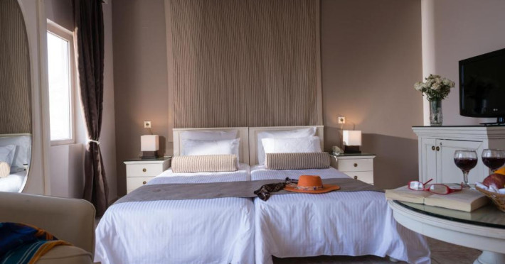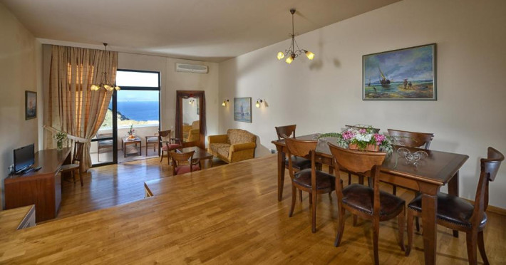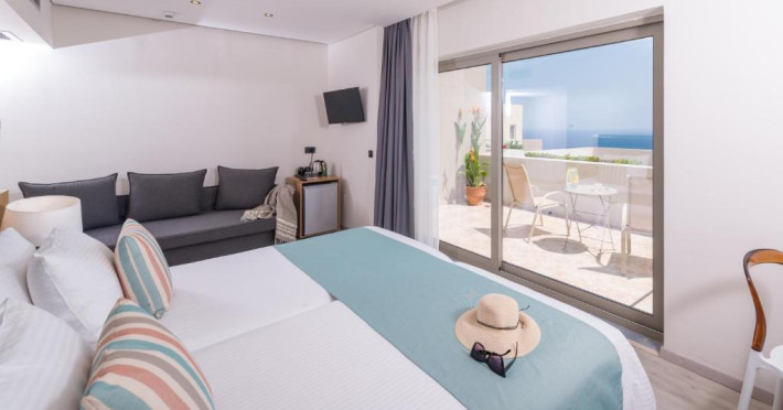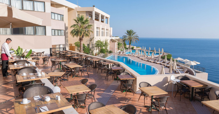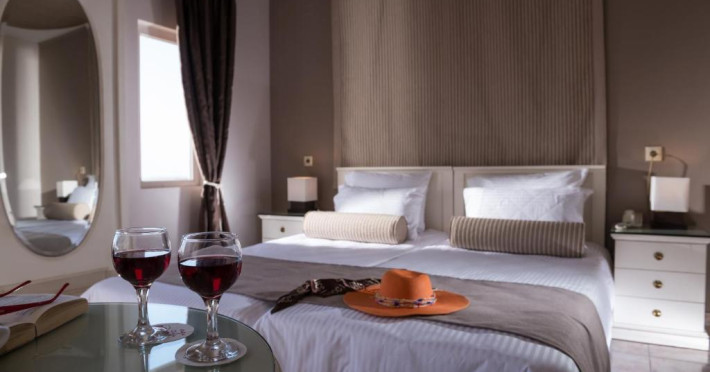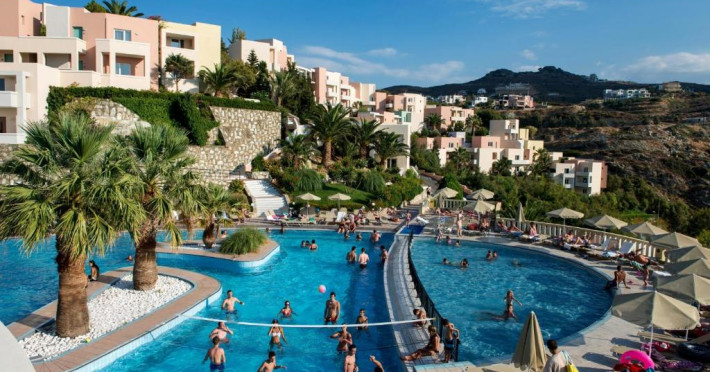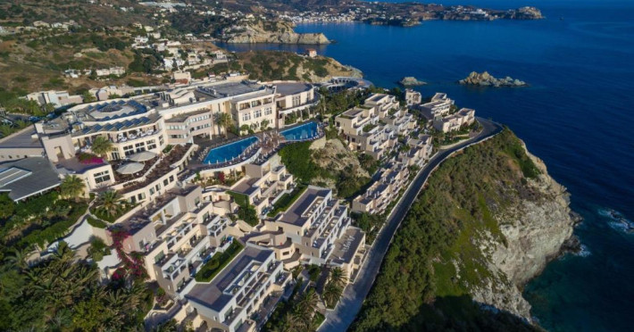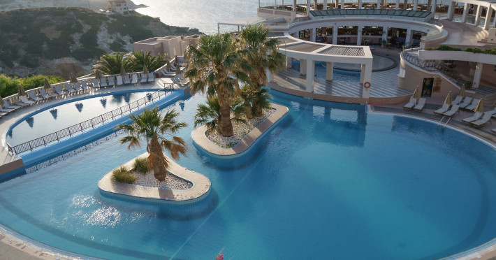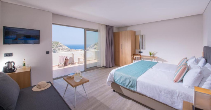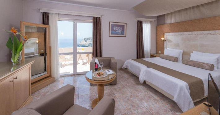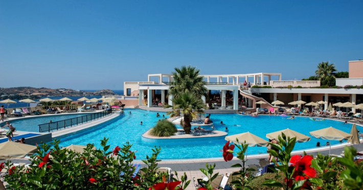 Acest hotel la plajă pentru așteptări ridicate se află chiar pe plajă, într-o zonă centrală în Agia Pelagia.