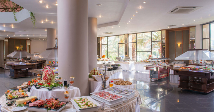 Locurile unde se poate lua masa cuprind o sală de mese, o cafenea și un bar. Clienții vor găsi bucate delicioase în cele 2 restaurante de nefumători cu aer condiționat. Complexul oferă pentru masă pensiune completă și regim all inclusive. Clienții de la all inclusive se bucură de oferte speciale, ca de exemplu gustări, de asemenea există o selecție de băuturi alcoolice și nealcoolice. Un bufet bogat la micul dejun, prânz și cină sunt delicioase și pregătite foarte diversificat. O atracție deosebită este gătitul în fața musafirilor.