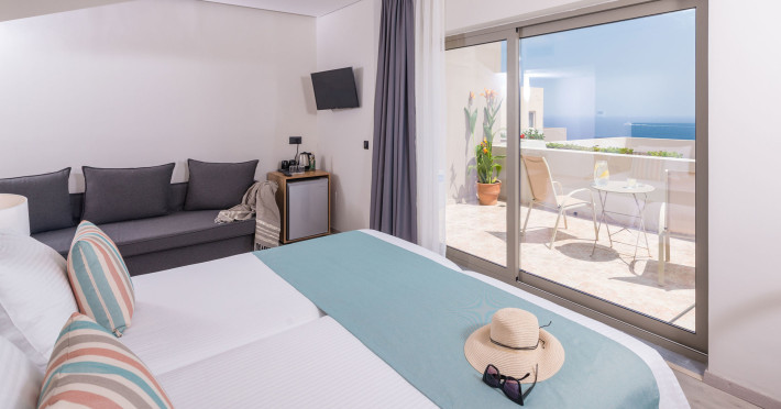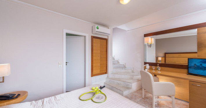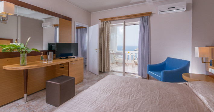 În camere există un aparat de aer condiționat și un sistem de încălzire. În majoritatea spațiilor de cazare clienții beneficiază de vedere spre mare de pe balcon sau de pe terasă. Sunt disponibile dormitoare separate. În plus, pentru cei mici sunt disponibile paturi pentru copii. De asemenea, sunt disponibile un seif și un minibar. Mai sunt disponibile și un frigider, un minifrigider și un aparat pentru cafea/ceai. În plus, există un telefon cu apelare directă, un televizor cu canale prin satelit/cablu TV, un radio, un DVD player și WiFi (gratuit). În cameră se găsesc și papuci de casă. Băile sunt dotate cu un duș, o cadă și o cadă cu hidromasaj. Un uscător de păr și halate de baie sunt disponibile pentru folosința zilnică. Articolele de cosmetică creează un confort deosebit în băi. Pentru familiile cu copii stau la dispoziție camere de familie.