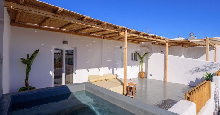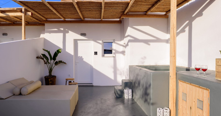 Athiri has is a small boutique property, with 3 suites, each one with a private exterior jacuzzi. All suites are spacious with luxury furniture and minimalistic decoration. Two of our suites can accommodate two guest, making them ideal for couples. Our larger suite has a capacity of up to four guests and may easily accommodates families or friends.Athiri has is a small boutique property, with 3 suites, each one with a private exterior jacuzzi. All suites are spacious with luxury furniture and minimalistic decoration. Two of our suites can accommodate two guest, making them ideal for couples. Our larger suite has a capacity of up to four guests and may easily accommodates families or friends.