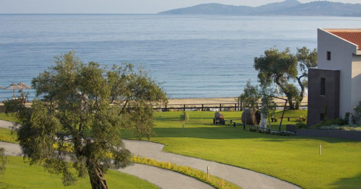 Hotelul este situat in peninsula Athos, la 2 km de muntele cu acelasi nume. Vilele Athos sunt la cativa km de plaja Komitsa.