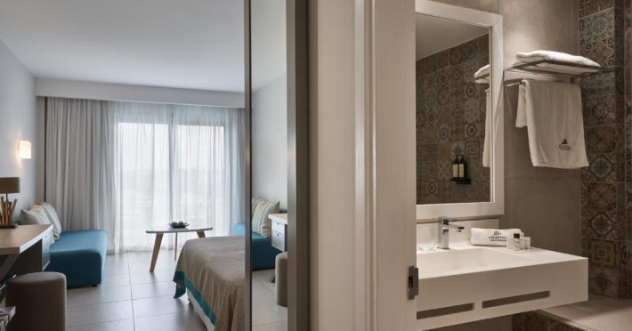 Acest complex pune la dispoziția oaspeților camere cu aerul, birou, ibric electric, cutie de valori, televizor cu ecran plat și baie proprie cu cadă. Toți oaspeții au la dispoziție WiFi gratuit, iar anumite camere sunt echipate cu un balcon. La Atlantica Aeneas Resort, camerele oferă lenjerie de pat și prosoape.