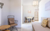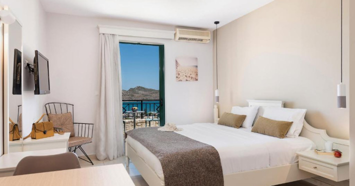 Fiecare cameră dispune de mașină pentru preparare cafea sau ceai și fierbător Camerele confortabile de la Atlantica Caldera Village au pardoseală de gresie/ marmură, aer condiționat, Tv cu canale prin satelit și seif. Unele camere au balcon cu vedere la mare sau la piscină. În camere există baie cu cadă sau duș prevăzută cu foehn. Oaspeții au acces gratuit la serviciul Wi-fi în camere. Curățenia in cameră se face zilnic. Fiecare unitate de cazare include o chicinetă utilată cu frigider. Proprietatea oferă camere pentru familie cu o suprafață mai mare și un număr mai mare de paturi față de cele standard.