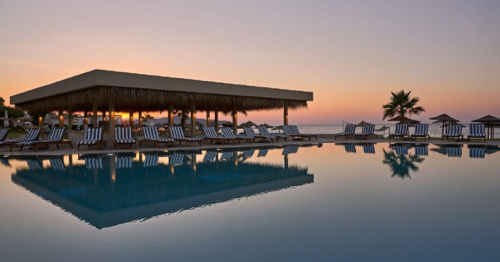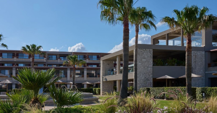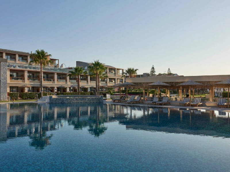 Resortul pune la dispozitia oaspetilor mai multe piscine exterioare, centru spa cu sauna, baie de aburi si tratamente de relaxare, sala de fitness si acces direct la plaja. Oferta gastronomica include mai multe restaurante si baruri care servesc preparate din bucataria greceasca, mediteraneana si internationala. De asemenea, hotelul ofera Wi-Fi in intreaga proprietate, receptie deschisa nonstop, servicii de concierge, parcare si diverse activitati de divertisment.
