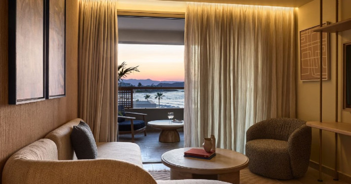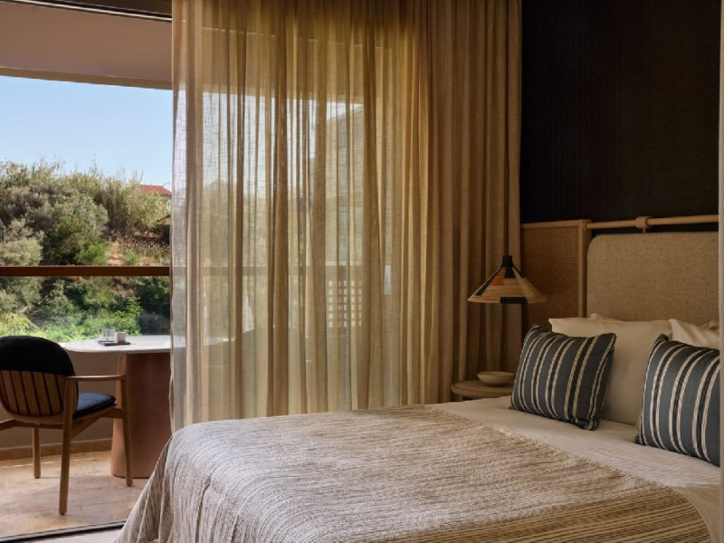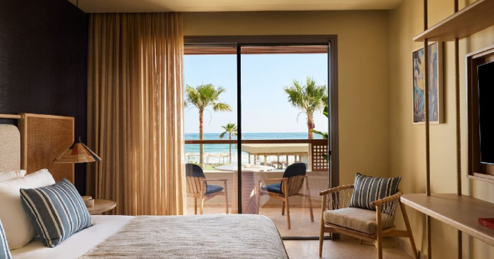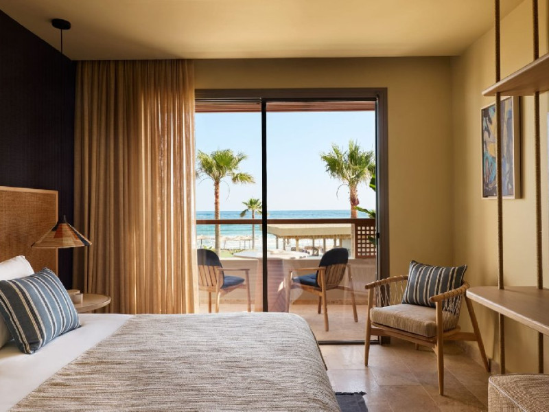 Hotelul dispune de camere, suite si vile elegante, unele cu piscina privata sau acces direct la piscina. Unitatile de cazare sunt dotate cu aer conditionat, Wi-Fi gratuit, TV cu ecran plat, minibar sau frigider, facilitati pentru prepararea cafelei si ceaiului, seif si baie privata cu halate de baie si articole de toaleta. Majoritatea camerelor au balcon sau terasa cu vedere catre mare sau gradini.