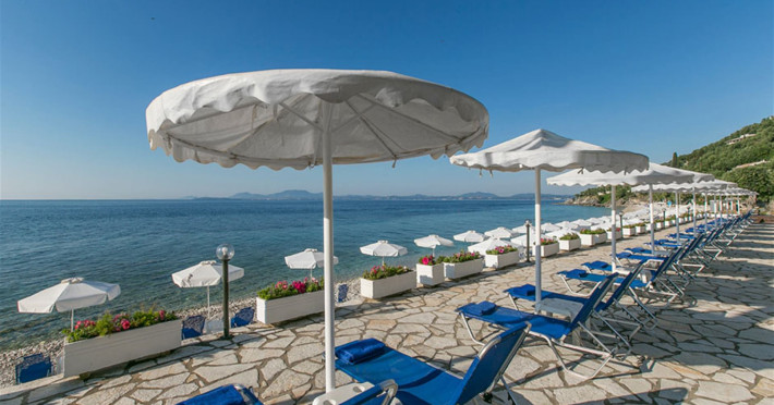 Hotelul este situat pe plaja, aproape de golful Nissaki, inconjurat de o gradina de maslini. Este situat la 22 km de orasul Corfu, de port si de aeroport.