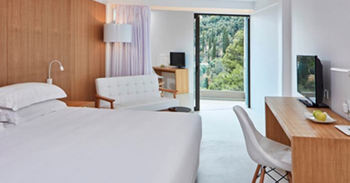 Hotelul se afla in Nissaki, in mijlocul unei gradini de maslini, cu o panorama frumoasa asupra golfului.Localizare/Descriere
