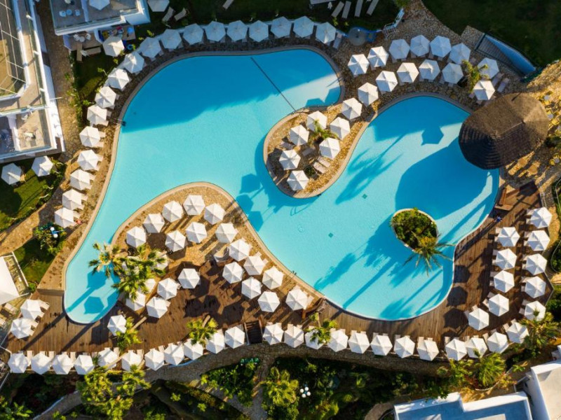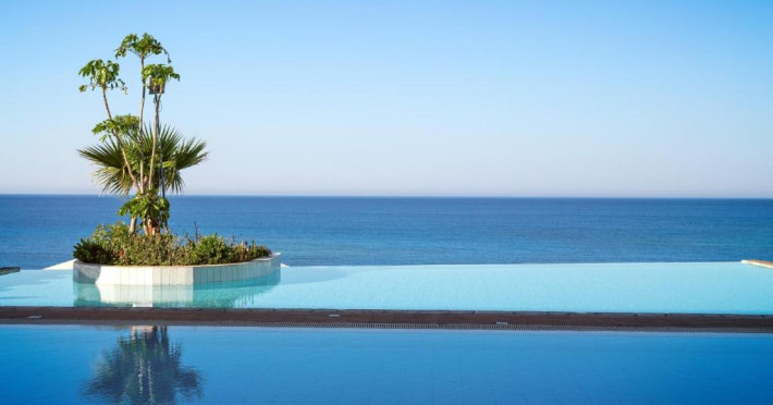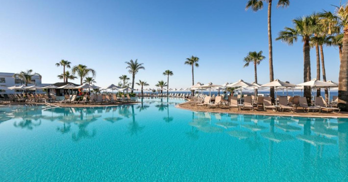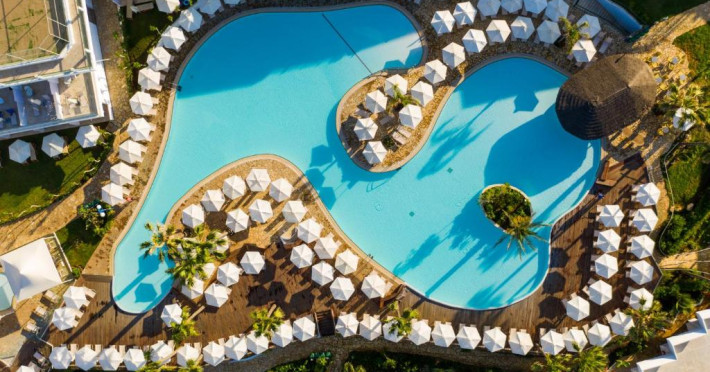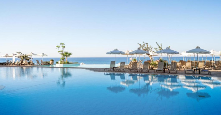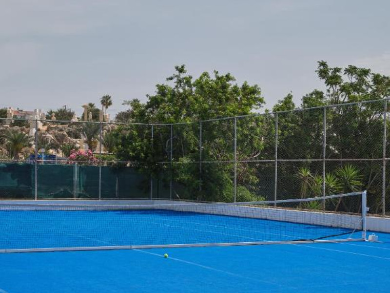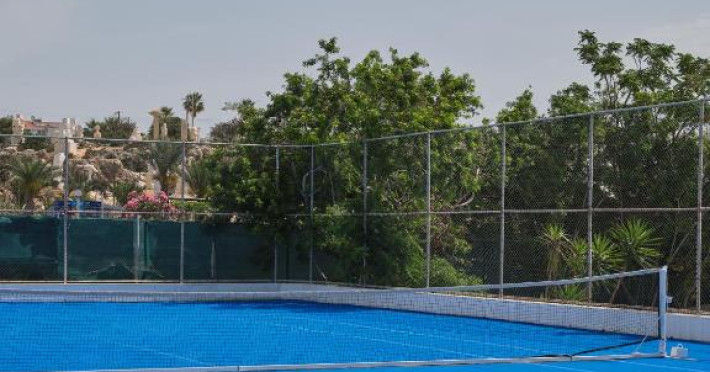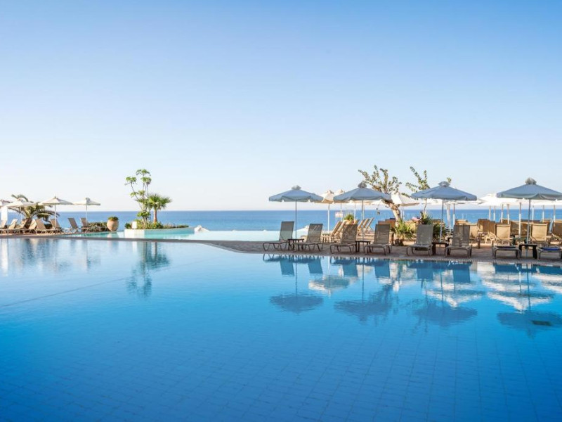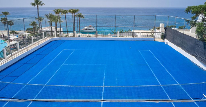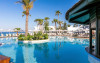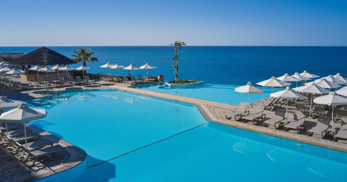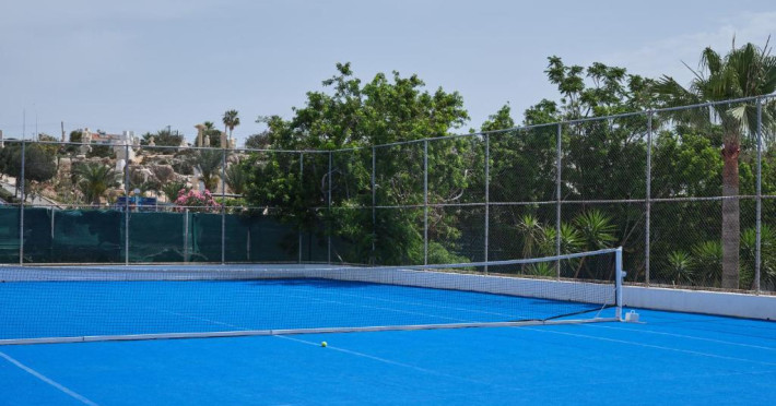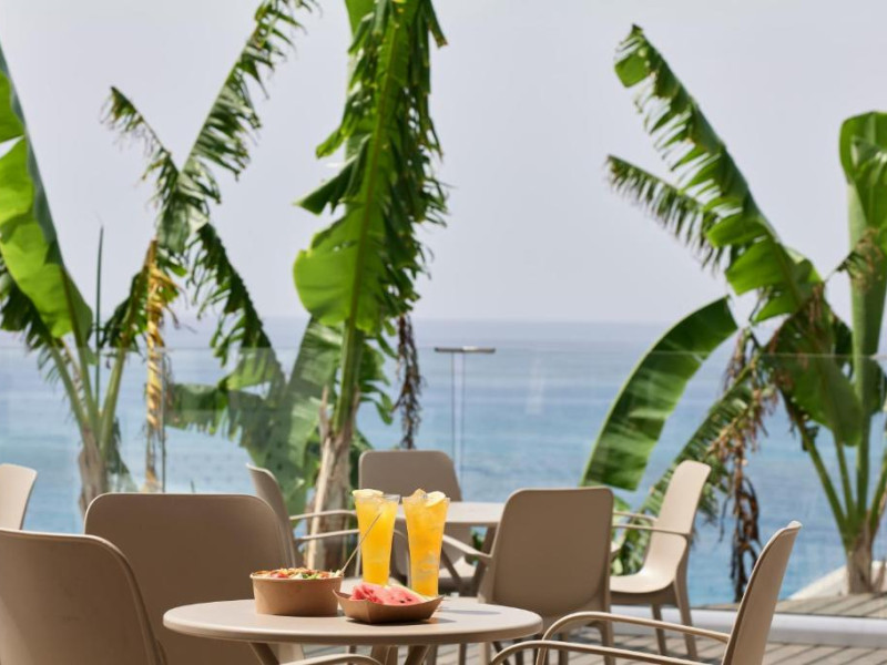 Complexul dispune de 3 piscine exterioare, inclusiv una pentru copii, și acces direct la plaja privată amenajată cu șezlonguri și umbrele. Restaurantul principal cu terasă panoramică servește preparate internaționale și cipriote, iar oaspeții pot savura băuturi răcoritoare la barul de la piscină.