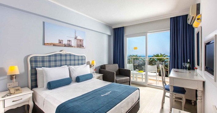 Camerele au vedere la mare sau la gradina si toate sunt dotate cu aer conditionat, telefon, televizor cu ecran plat si canale prin Satelit, minibar, seif, cana fierbator pentru prepararea cafelei si a ceaiului, baie cu dus, articole de toaleta gratuite, uscator de par, balcon.