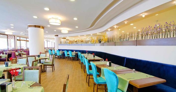 Complexul dispune de un restaurant in sistem bufet, cu preparate traditionale si internationale, un restaurant A'la Carte cu specialitati din peste si fructe de mare, baruri, piscina in aer liber cu tobogane si terasa dotata cu sezlonguri, un centru spa cu baie turceasca, sauna si servicii de masaj, sala de fitness, mese de tenis, biliard, darts, minigolf, Aqua Park, plaja privata cu umbrele si sezlonguri, parcare.