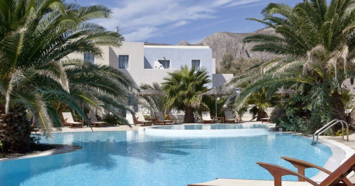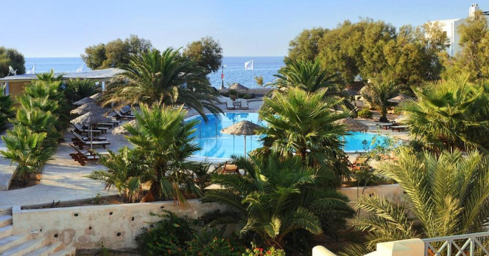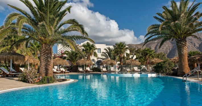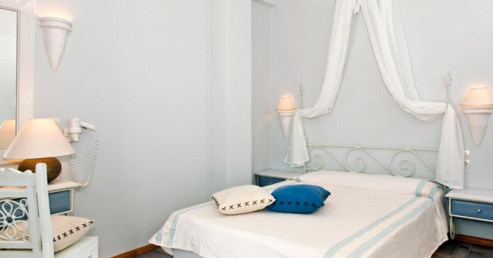 Among the various amenities offered, the hotel provides a swimming pool with a separate children's area, sun-beds and pool bar. At the beach of Perivolos in front of the hotel, there are umbrellas and sunbeds offered free of charge for the hotel guests (upon availability).