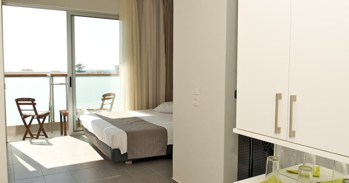 Sunt disponibile 47 camere. În camere există baie cu cadă sau duș ce are în dotare foehn și articole de toaletă gratuite. Camerele de la Atlantis City Hotel sunt dotate cu aer condiționat, Tv cu canale prin satelit și seif. Unele camere au balcon cu vedere la mare, unde oaspeții pot admira apusul sau răsăritul soarelui. Oaspeții au la dispoziție serviciul de room service pentru a servi masa sau diverse băuturi. Oaspeții au acces gratuit la serviciul Wi-fi în camere. Anumite camere au cadă cu hidromasaj care asigură un plus de confort și răsfăț. Fiecare unitate de cazare are frigider. Proprietatea oferă camere pentru nefumători.