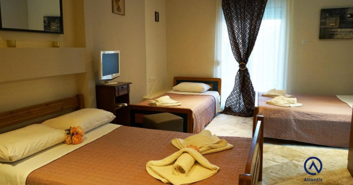 Hotelul Atlantis este situat in centrul oraşului Nea Kallikratia din Halkidiki, la doar 100 de metri de mare. Ofera unitati de cazare cu aer conditionat, balcon mobilat, TV prin satelit. Wi-Fi, seif, baie privata cu duș, uscator de par si articole de toaleta gratuite.Datorita dinamicitatii domeniului disponibilitatea ofertelor se modifica de la un moment la altul. De aceea ofertele sunt valabile in limita locurilor disponibile. Agentia nu este responsabila pentru eventualele neconcordante care pot aparea intre informatiile privind tarifele si alte detalii din site si informatiile primite in agentie. In aceste cazuri vor avea prioritate, intotdeauna, informatiile primite in agentie.