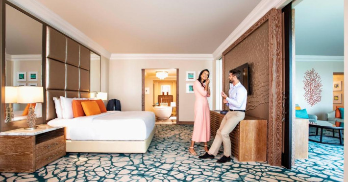 The opulent Royal Tower offer 1548 luxurious guest rooms and suites with breathtaking views of the Arabian Gulf or the Palm Island from every room. The exclusive Bridge Suite spanning the soaring towers as well as two stunning underwater Lost Chamber Suites will feature captivating and direct views into the marine habitat. Over 17restaurants- bars-lounges-a night club and dining experiences are nestled in tropical enclaves-delightful hideaways or in the heart of Atlantis itself with four internationally renowned chefs. The 42-acre Aquaventure waterpark includes water slides, river rides, a water playground for young children, a private beach and lush topical landscaping. Venture into The Tower of Neptune to start your adventures on our heart-pumping waterslides including The Leap of Faith.This slide will have you falling over 9 stories in a mere second before you find yourself speeding through a clear acrylic tube surrounded by sharks and rays.The all new Tower of Poseidon is packed with never seen before, record breaking waterslides plus the Middle East’s longest zip line circuitResort Pools; A sophisticated Royal pool and Zero Entry Pool-For the families. The Lost Chambers extraordinary underwater ruins- which re-create artifacts from the 11000year-old civilization. Discover what sea creatures life in Atlantis might have been like as you meander through this world. Spa Fitness Centre- Feature 27wet and dries treatment rooms including steam room- sauna- vitality pool and relaxation area. A fully equipped fitness centre with stretch- yoga studio- a running track- 4tennis courts. Water Sports- Windsurfing-sea kayaking-small sailing vessels-air-blown floating devices is available. Dolphin bay a State of the art dolphin education centre interaction habitat-get up close and personal with one of the world most charismatic animals. The Avenues 7500 m2 of retail entertainment with a host of specialty restaurants-luxury boutiques- an exciting nightclub world class shopping facilities. Kids Club Open to all children from 3-12 years-4 zones Amphitheatre-Technology zone-Play zone Arts Crafts Club Rush-for the older- more sophisticated pre-teen teenager-will be a fully supervised No adults club.The opulent Royal Tower offer 1548 luxurious guest rooms and suites with breathtaking views of the Arabian Gulf or the Palm Island from every room. The exclusive Bridge Suite spanning the soaring towers as well as two stunning underwater Lost Chamber Suites will feature captivating and direct views into the marine habitat. Over 17restaurants- bars-lounges-a night club and dining experiences are nestled in tropical enclaves-delightful hideaways or in the heart of Atlantis itself with four internationally renowned chefs. The 42-acre Aquaventure waterpark includes water slides, river rides, a water playground for young children, a private beach and lush topical landscaping. Venture into The Tower of Neptune to start your adventures on our heart-pumping waterslides including The Leap of Faith.This slide will have you falling over 9 stories in a mere second before you find yourself speeding through a clear acrylic tube surrounded by sharks and rays.The all new Tower of Poseidon is packed with never seen before, record breaking waterslides plus the Middle East’s longest zip line circuitResort Pools; A sophisticated Royal pool and Zero Entry Pool-For the families. The Lost Chambers extraordinary underwater ruins- which re-create artifacts from the 11000year-old civilization. Discover what sea creatures life in Atlantis might have been like as you meander through this world. Spa Fitness Centre- Feature 27wet and dries treatment rooms including steam room- sauna- vitality pool and relaxation area. A fully equipped fitness centre with stretch- yoga studio- a running track- 4tennis courts. Water Sports- Windsurfing-sea kayaking-small sailing vessels-air-blown floating devices is available. Dolphin bay a State of the art dolphin education centre interaction habitat-get up close and personal with one of the world most charismatic animals. The Avenues 7500 m2 of retail entertainment with a host of specialty restaurants-luxury boutiques- an exciting nightclub world class shopping facilities. Kids Club Open to all children from 3-12 years-4 zones Amphitheatre-Technology zone-Play zone Arts Crafts Club Rush-for the older- more sophisticated pre-teen teenager-will be a fully supervised No adults club.