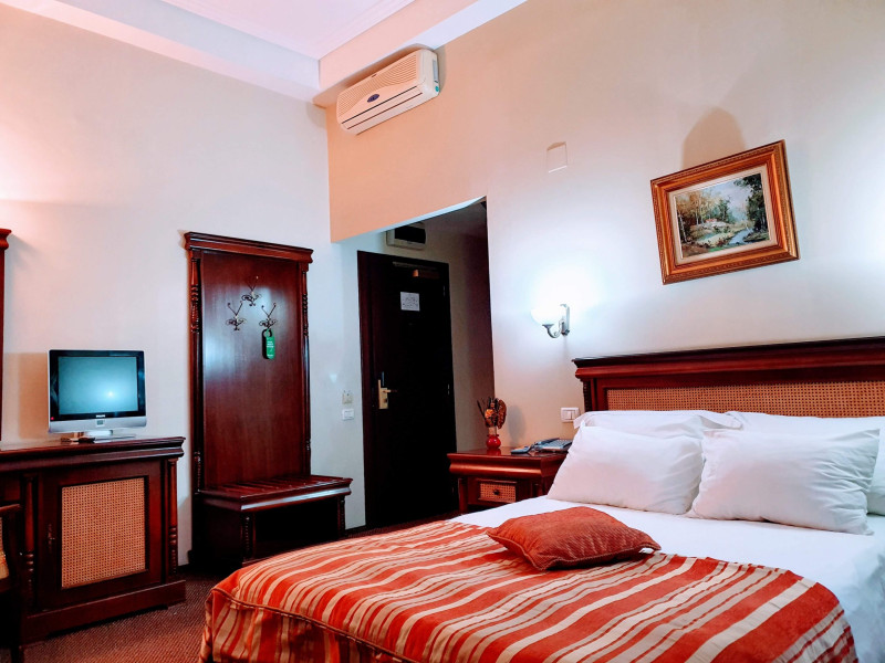 Set in a historic residence from 1912, Atrium Hotel Ateneu City Center, is a privately owned small luxury hotel, moments away from Victoriei Avenue. It offers luxurious rooms in the centre of Bucharest. All air-conditioned rooms are equipped with flat-screen cable TV, a seating area and a minibar. The spacious bathrooms feature bathrobes, slippers and a hairdryer. Atrium Hotel Ateneu City Center offers a 24-hour bar, a breakfast room and a conference hall that can accommodate up to 50 guests. Located in the heart of the city close to Victoriei Avenue, this boutique hotel is 200 metres away from shopping areas, 500 metres from Sala Palatului, the Romanian Athenaeum and the Royal Palace and Art Museum. The historical city centre can be reached within a 15-minute walk. Henri Coanda International Airport can be reached within a 30-minute drive from Atrium Hotel Ateneu City Center. Wired internet and WiFi are available free of charge in public areas and in the hotel rooms. Atrium Hotel Ateneu City Center offers 24-hour airport transfers upon request and for an additional cost.Datorita dinamicitatii domeniului disponibilitatea ofertelor se modifica de la un moment la altul. De aceea ofertele sunt valabile in limita locurilor disponibile. Agentia nu este responsabila pentru eventualele neconcordante care pot aparea intre informatiile privind tarifele si alte detalii din site si informatiile primite in agentie. In aceste cazuri vor avea prioritate, intotdeauna, informatiile primite in agentie.