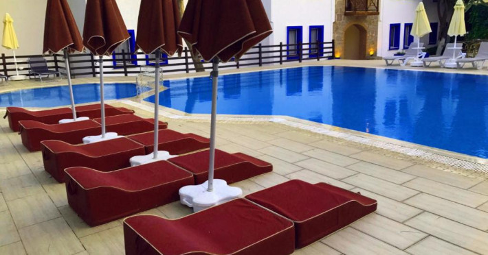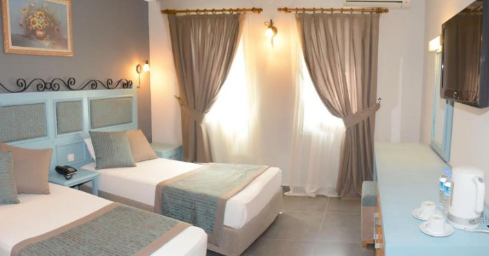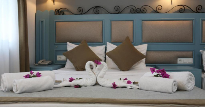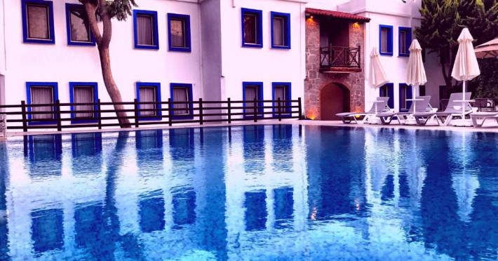Construit in stilul unei vile romane vechi și renovat in 2017, Hotelul Atrium are camere simple și o piscină. Acesta este situat pe malul mării, la 2 minute de mers pe jos de centrul orașului Bodrum. Oaspeții se pot bucura de o locație liniștită, inconjurată de palmieri, lămai și mandarini.