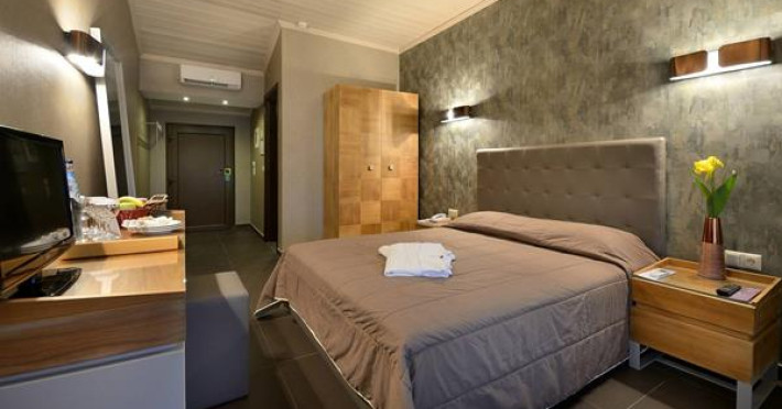 Located at the southern end of Thassos Island, a short distance from Potos village, Atrium 4 star Hotel is just steps away from the vivid nightlife of the popular seaside resort in Thassos. A modern exclusive beach hotel in Thassos, with warm and welcoming hospitality, Atrium Thassos Hotel is an ideal choice for a family holiday or a romantic escape. Very important remark: sunbeds and umbrellas on the beach are with extra-charge.Full description