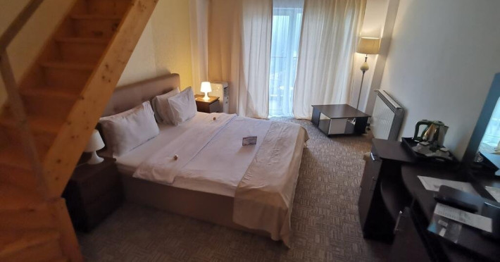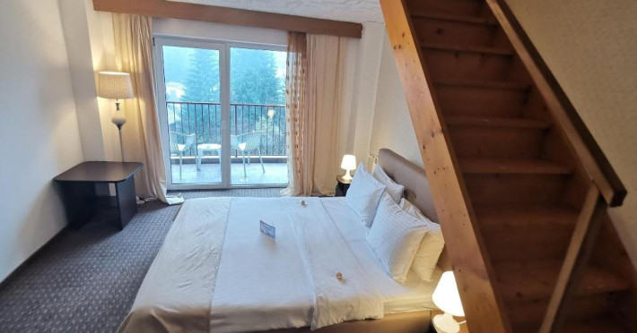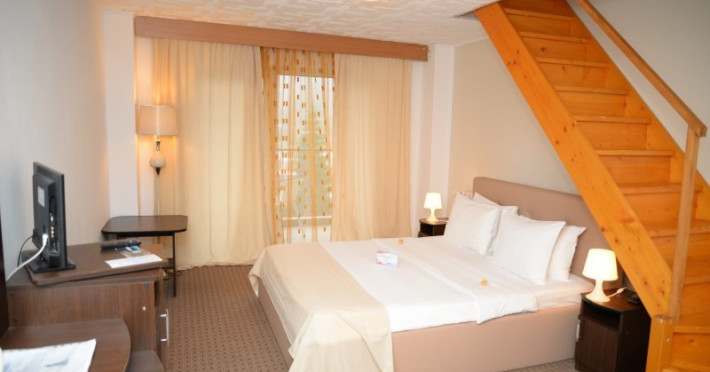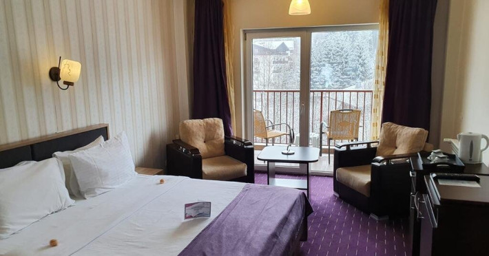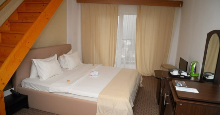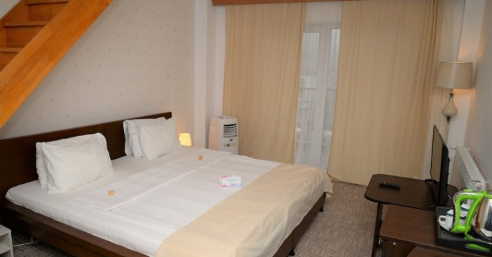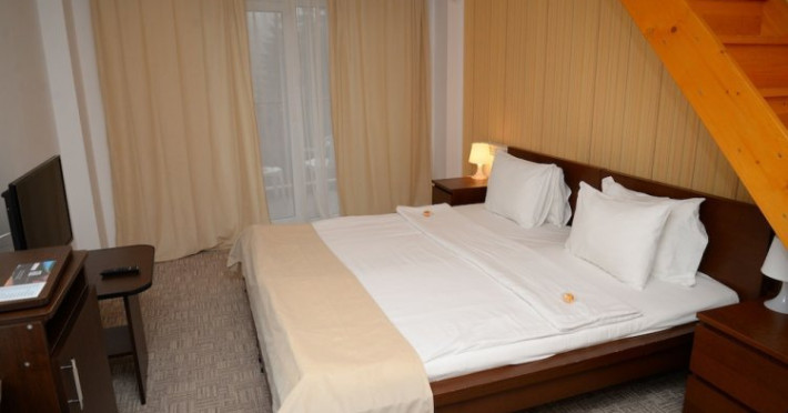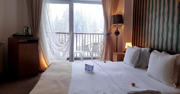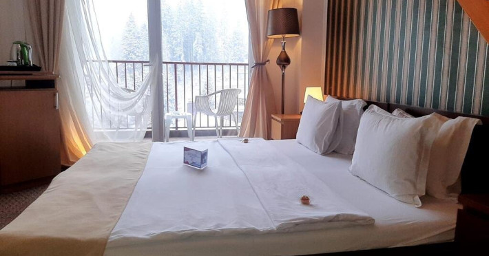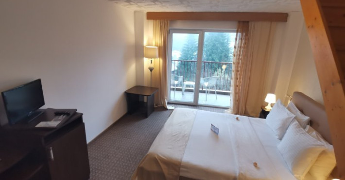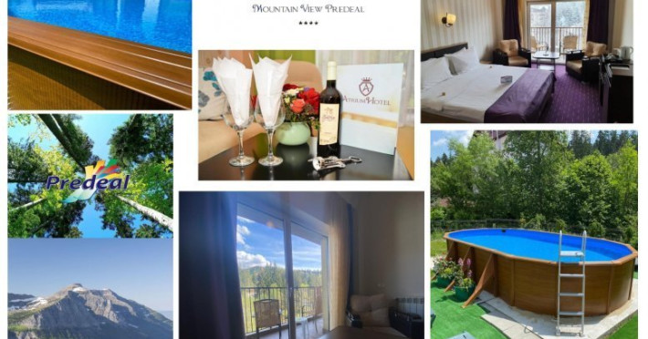 Informatii Situat la poalele muntilor Bucegi, in orasul Predeal, la doar 150 metri de partia de ski Clabucet, cu acces direct catre partia de ski, HOTEL ATRIUM MOUNTAIN VIEW ofera oaspetilor camere duble, duplex sau apartamente spatioase. Fiind situat intr-o zona superba a Muntilor Bucegi, hotelul poate fi alegerea perfecta atat pentru sezonul de vara pentru aerul curat si traseele montane cat si pe timp de iarna datorita partiilor de ski pe care orasul Predeal le are. Dotari si servicii SALA CONFERINTE Iti oferim un spatiu pe masura evenimentului tau - indiferent daca ai nevoie de o sala de conferinta in Predeal pentru un training sau o reuniune internationala. Echipa noastra de profesionisti iti va fi mereu alaturi avand grija sa nu lipseasca nimic din sala ta de conferinta. Capacitate de 17 de locuri;Proiector multimedia, flip chart, computer conectat la internet, copiator si scaner.RESTAURANT Rafinamentul desavarsit pe care il vei regasi in preparatele culinare propuse in restaurantul nostru este completat de calitatea serviciilor oferite si de ambientul deosebit, care vor transforma fiecare vizita intr-o experienta gastronomica. SPA Odata ce ati ales sa ne fiti oaspeti, cu siguranta nu va veti plictisi. Aveti acces la jacuzzi, sauna si sala de fitness, toate puse gratuit la dispozitia dumneavoastra pentru petrecerea unui sejur de vis In hotelul nostru Servicii masa MASA: restaurant propriu. Program Mic Dejun: 08:30 - 10:30 Dotari camere Hotelul dipune de 19 spatii de cazare: 2 apartamente, 7 camere duplex si 10 camere duble matrimoniale, toate cu vedere la munte, balcon, TV cu ecran plat si canale prin cablu, precum si acces gratuit la internet. Camera dubla este ideala pentru cazarile de cuplu fiind dotate cu saltele de calitate pentru un somn odihnitor, baie proprie, balcon, minibar, TV si internet. Dimensiune 23 mp, capacitate maxima 2 ad + 1 copil. Camera duplex este potrivita pentru vacantele in familie ce pot gazdui pana la 2 adulti si 3 copii, dotate cu baie proprie, minibar, TV si internet. Dimensiune 33 mp, capacitate maxima 2 ad + 2 copii. Camera de tip apartament este potrivita pentru 4 persoane. Camerele sunt dotate cu baie proprie, minibar, TV, si internet. Dimensiune 43 mp, capacitate maxima 2 ad + 2 copii.Datorita dinamicitatii domeniului disponibilitatea ofertelor se modifica de la un moment la altul. De aceea ofertele sunt valabile in limita locurilor disponibile. Agentia nu este responsabila pentru eventualele neconcordante care pot aparea intre informatiile privind tarifele si alte detalii din site si informatiile primite in agentie. In aceste cazuri vor avea prioritate, intotdeauna, informatiile primite in agentie.