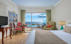 Sunt disponibile 254 camere. Camerele luminoase de la Atrium Prestige Thalasso Spa Resort & Villas sunt dotate cu parchet, aer condiționat, Tv cu canale prin satelit și seif. Unele camere au balcon cu vedere la mare sau la grădină. Fiecare cameră dispune de un aparat pentru preparare cafea sau ceai, cană-fierbător și minibar. Oaspeții pot solicita serviciul de room service pentru a servi masa sau diverse băuturi. În camere există baie cu cadă sau duș ce are în dotare foehn și articole de toaletă gratuite. Oaspeții au acces gratuit la serviciul Wi-fi în camere. Curățenia in cameră se face zilnic. Anumite camere au cadă cu hidromasaj care asigură un plus de confort și răsfăț. Proprietatea oferă camere pentru familie cu o suprafață mai mare și un număr mai mare de paturi față de cele standard. Se pot rezerva de asemenea camere pentru nefumători.