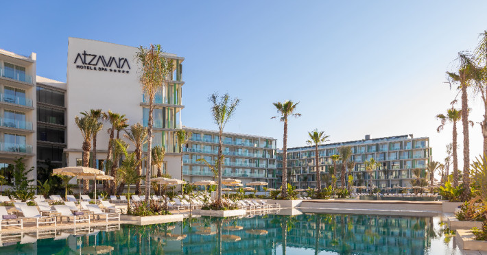 Hotelul Atzavara este situat la aproximativ 150 de metri de plaja. Centrul orasului se afla la aproximativ 1,5 km distanta. Hotelul dispune de receptie 24H, Wi-Fi, 7 piscine, 4 restaurante, 2 baruri, shopping centre, centru spa, sala fitness, miniclub, animatie.Web: www.atzavarahotel.com