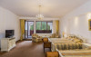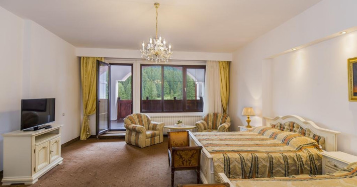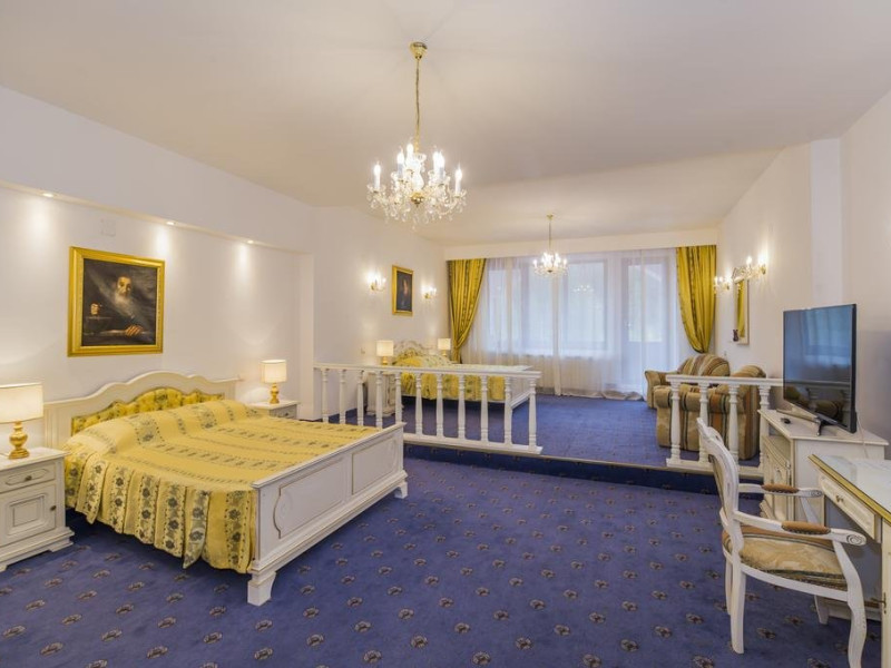Cazare : Oaspetii au la dispozitie 208 locuri de cazare, in 93 de camere dotate cu baie proprie, aer conditionat, cablu TV, telefon, radio, minibar, sala de conferinta, jacuzzi, sauna, sala de intretinere/sport:15 superior room (60 mp),36 deluxe room ( 100 mp),15 executive room (120 mp),20 premier suite,7 deluxe suite (200 mp).Spatiile de cazare sunt mari si luminoase, mobilate luxurios, in stilul "Imparatul Romanilor" iar arhitectura interioara este foarte variata.