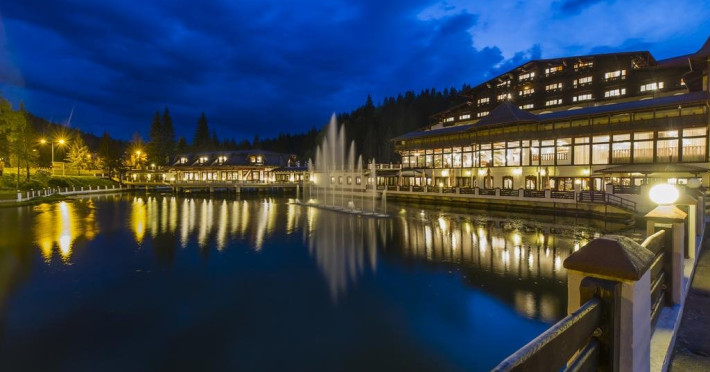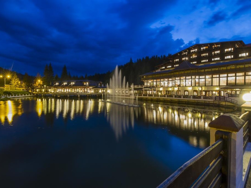Hotelul AURELIUS IMPARATUL ROMANILOR : Complexul arhitectonic realizat in anul 2006, aduce rafinamentul si nobletea caracteristice Alpilor Tirolezi pe malul lacului Miorita din statiunea Poiana Brasov (1030 metri altitudine).Cladirea impunatoare ofera o panorama unica spre partia de schi de pe muntele Postavarul. Structurile unui complex turistic de lux, hotel, restaurant cu terasa pe lac, sali de conferinta, parcare pazita se integreza perfect in peisajul montan.Lobby-ul impunator, bogat decorat, va introduce intr-o atmosfera specifica marilor hoteluri europene. Hotelul este situat pe marginea lacului din Poiana Brasov, cea mai cunoscuta statiune din Romania si ofera o priveliste unica asupra zonei montane.
