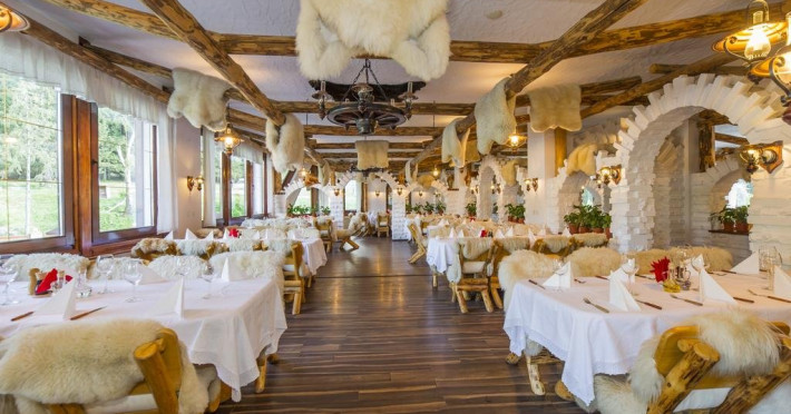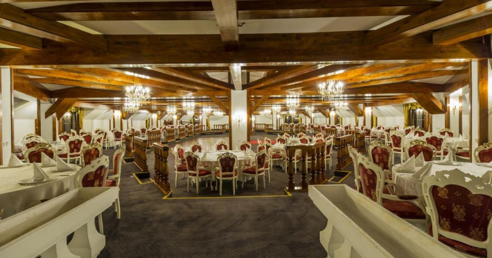 Servicii de masa : Renovat si decorat in stilul "Imparatul Romanilor" restaurantul are 350 de locuri si ofera posibilitati de amenajare pentru servirea mesei, pentru spectacole sau conferinte.Salonul Miorita are o capacitate de 300 de locuri dispuse pe 2 niveluri, unite printr-o scara de acces,ideal pentru a admira locul luminat de razele diminetii in timp ce savurati micul dejun. Oferta culinara imbina cele mai bune traditii locale cu rafinamentul.