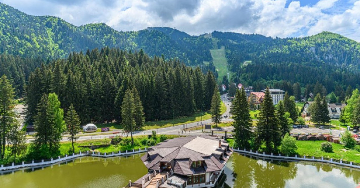 Hotelul este situat pe marginea lacului din Poiana Brasov, cea mai cunoscuta statiune din Romania, si ofera o priveliste unica asupra zonei montane.Cladirea impunatoare ofera o panorama unica spre partia de schi de pe muntele Postavarul. Structurile unui complex turistic de lux, hotel, restaurant cu terasa pe lac, sali de conferinta, parcare pazita se integreza perfect in peisajul montan.