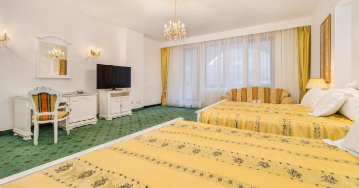 Spatiile de cazare sunt mari si luminoase, mobilate luxurios, in stilul Imparatul Romanilor, iar arhitectura interioara este foarte variata.