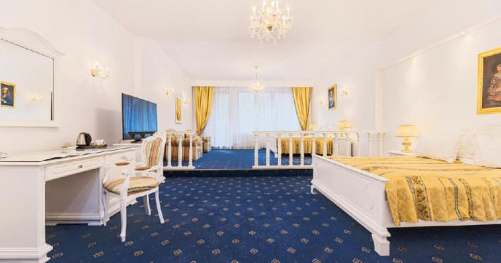 Apartament premier: cu un living room si 1 dormitor cu 2 paturi Queen Size; suprafata: 160 mp
