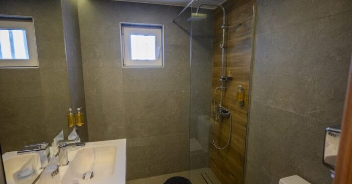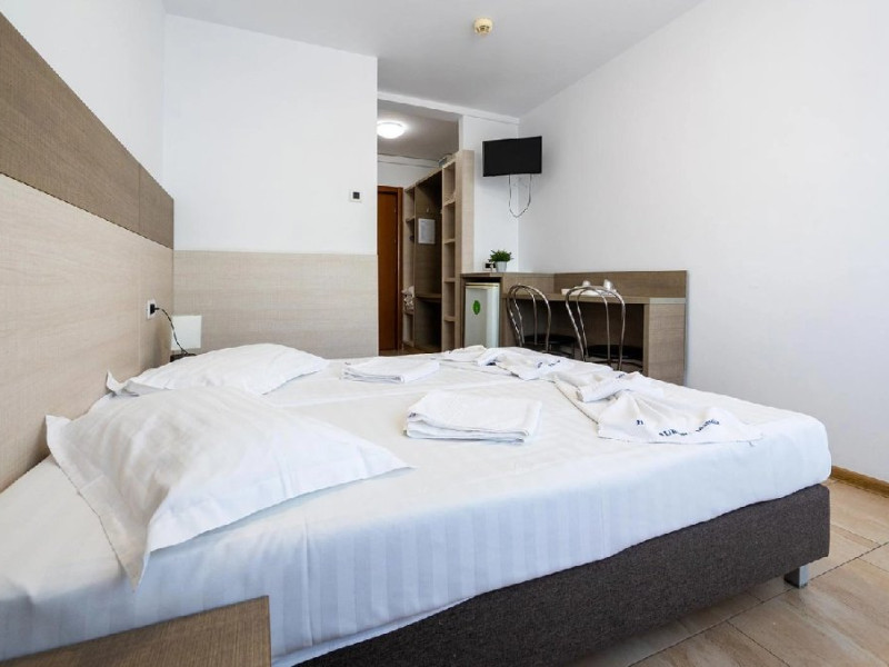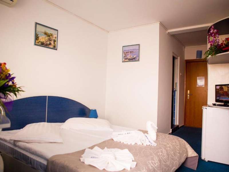 Camerele, cu o suprafata aproximativa de 16 mp, sunt dotate cu balcon (fara mobilier), baie proprie cu dus, minibar, TV, aer conditionat, ferestre termopan, internet, pardoseala cu mocheta sau gresie si acces pe baza de cartela.