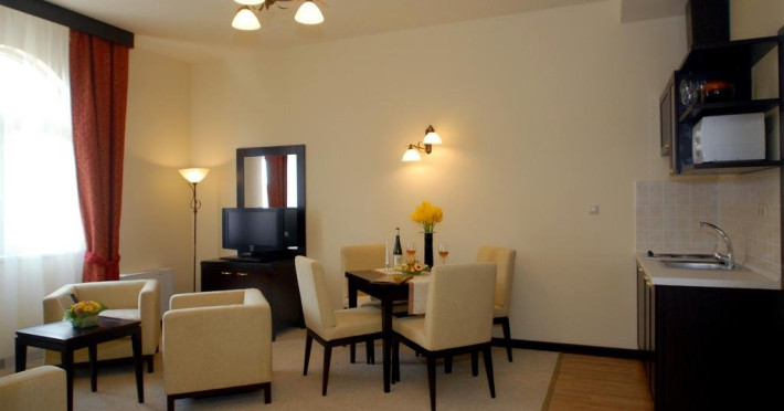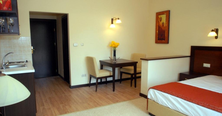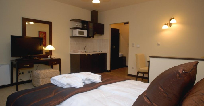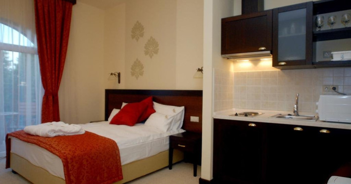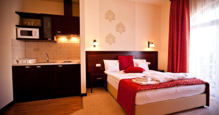 Hotelul dispune de camere spatioase, dotate cu aer conditionate si mobila de calitate, TV, baie privata cu cada, Wi-Fi, kitchinette.