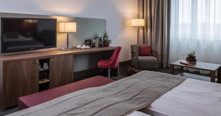 Camerele elegante si mobilate cu gust includ aer conditionat, TV cu ecran plat cu canale prin cablu, minibar si baie cu uscător de păr. Camerele situate la etajele superioare beneficiază de vedere la centrul vechi.