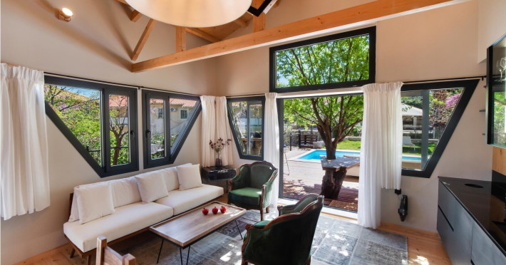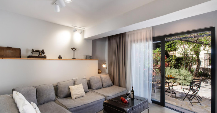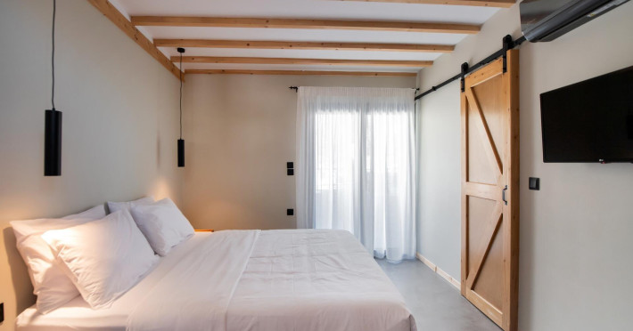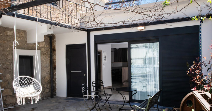 Just a minute walk away from the square of Karia village with the view of Agios Spyridonas, the AV – Suites is placed. A unique renovated property consisted of four attached and independent residences. Giorgio, a completely new built attached residence. Maria, a 2 bedroom loft, Vivi a 2 bedroom apartment and Cesar a renovated studio.