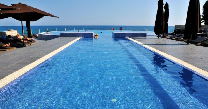Piscina exterioara (220 mp)cu terasa, sezlonguri, umbrele si vedere catre orasul vechi,o piscina (150 mp) exclusiv pentru turistii cazati in vile, de asemenea cu sezlonguri si umbrele incluse, piscina interioara (220 mp), baie turceasca, sauna, whirlpool, sala de fitness, bar la piscina, muzica live si programe de animatie.