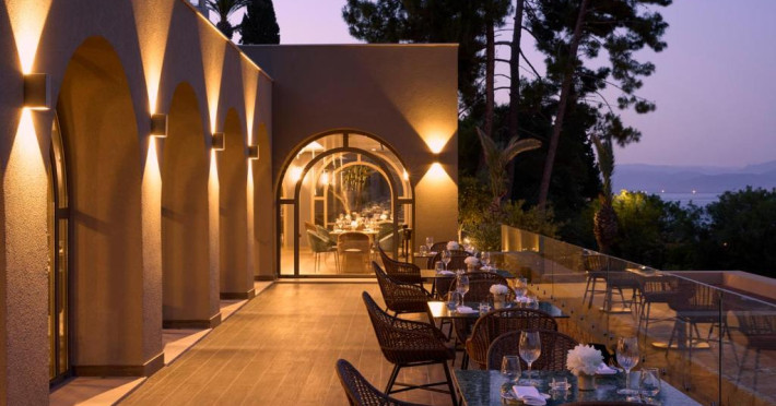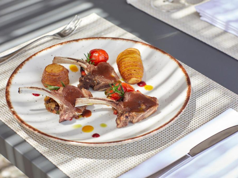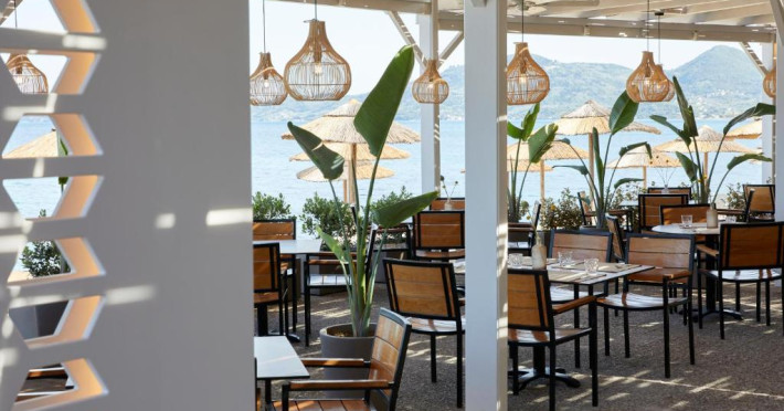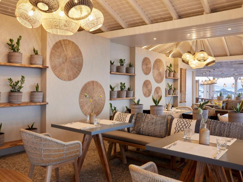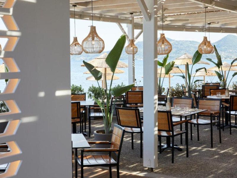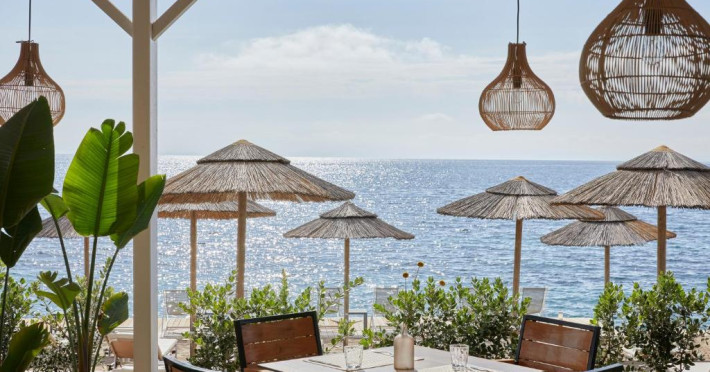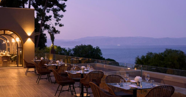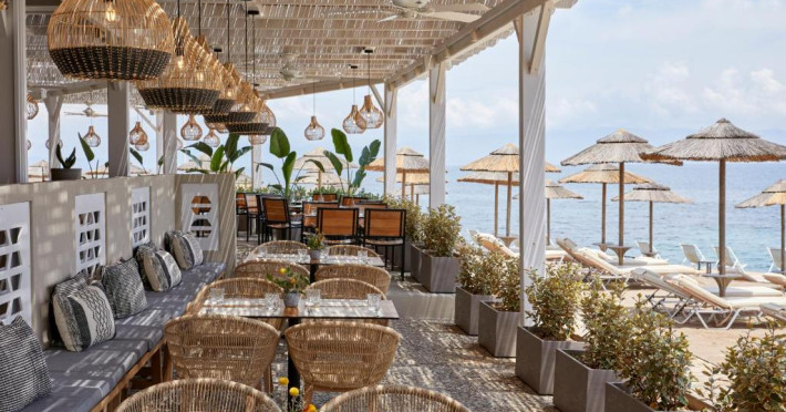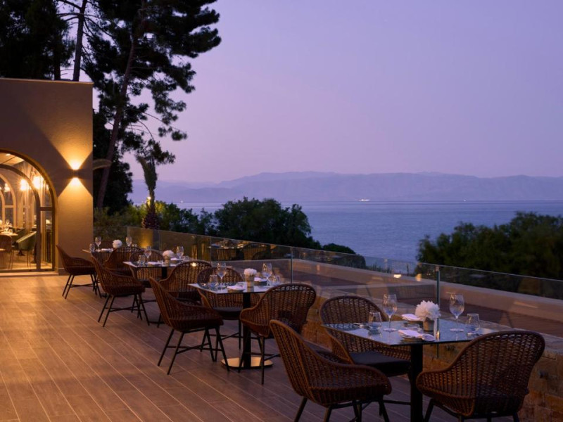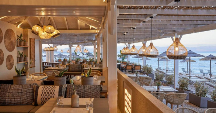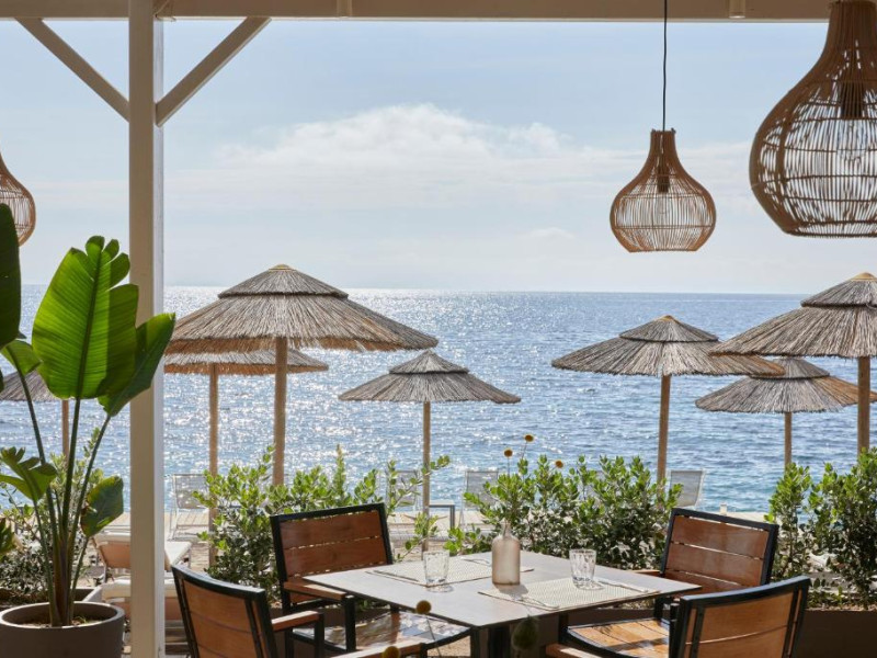 Restaurantul hotelului servește preparate din bucătăria mediteraneană, cu accent pe specialități grecești și fructe de mare proaspete. Facilitățile includ bar la piscină, zonă de lounge, internet Wi-Fi gratuit și parcare privată. Personalul atent și serviciile de concierge asigură o experiență memorabilă oaspeților.