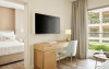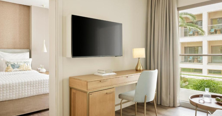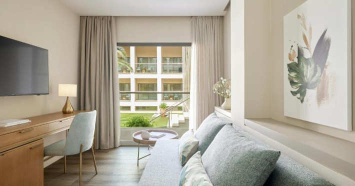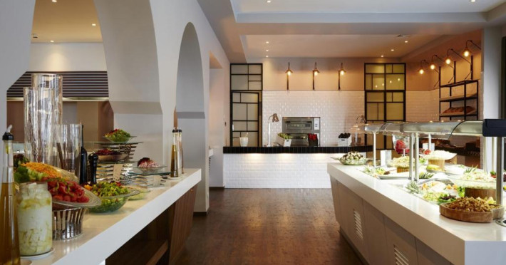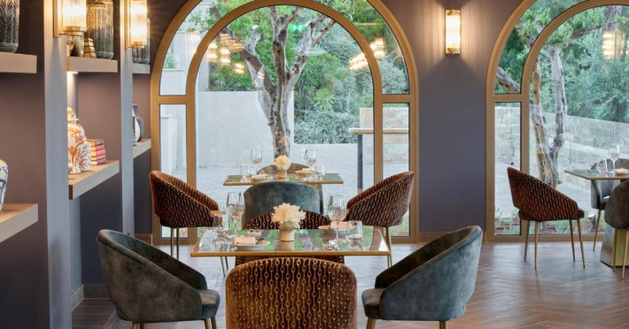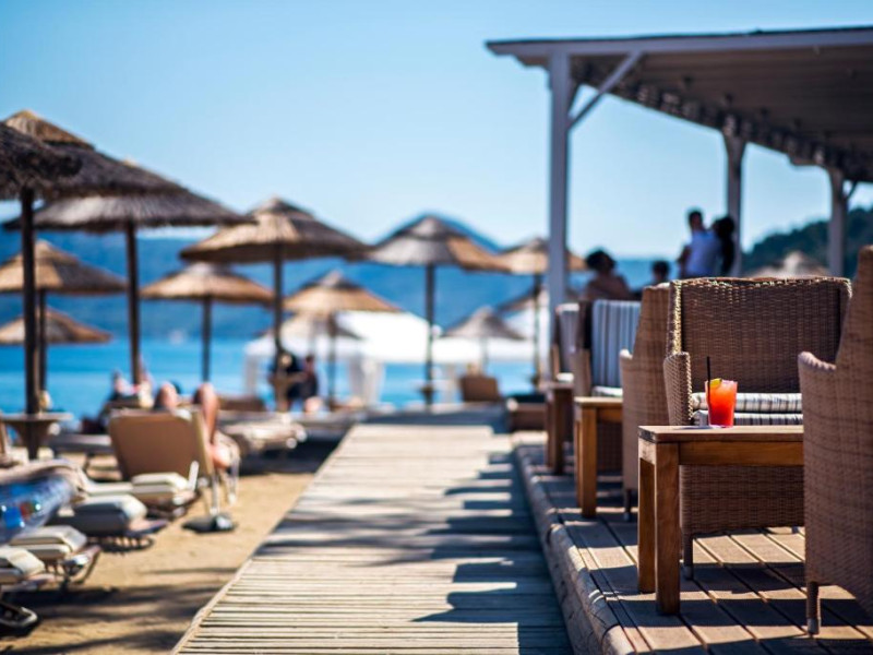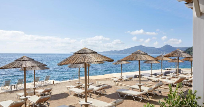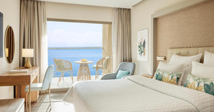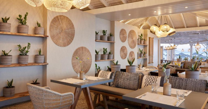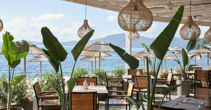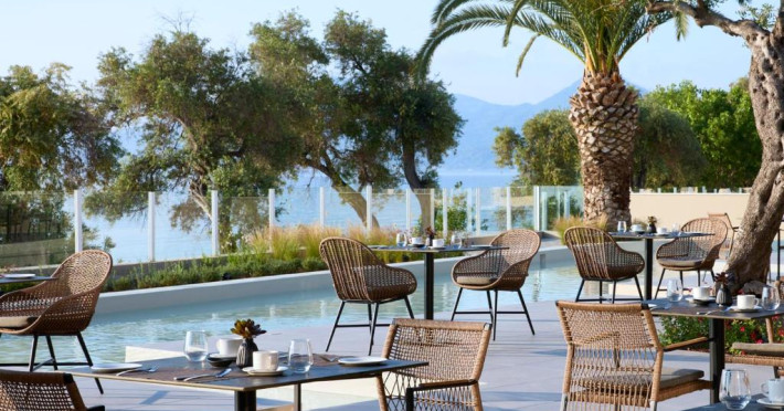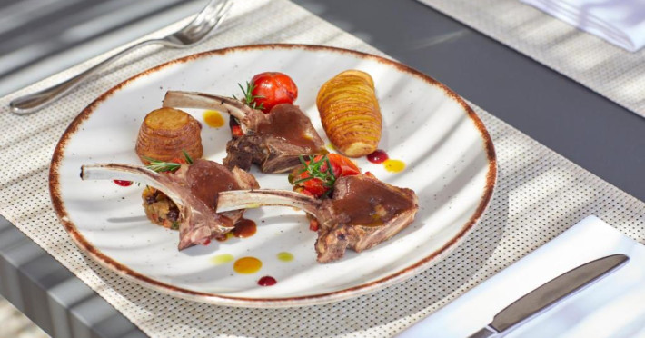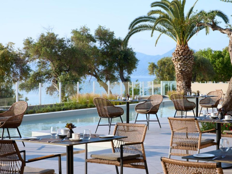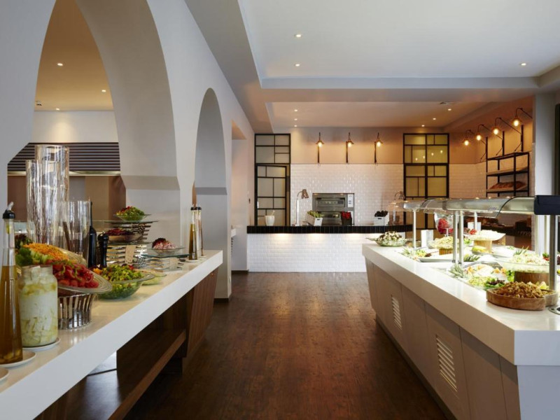 Restaurantul hotelului servește preparate din bucătăria mediteraneană, cu accent pe specialități grecești și fructe de mare proaspete. Facilitățile includ bar la piscină, zonă de lounge, internet Wi-Fi gratuit și parcare privată. Personalul atent și serviciile de concierge asigură o experiență memorabilă oaspeților.