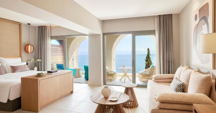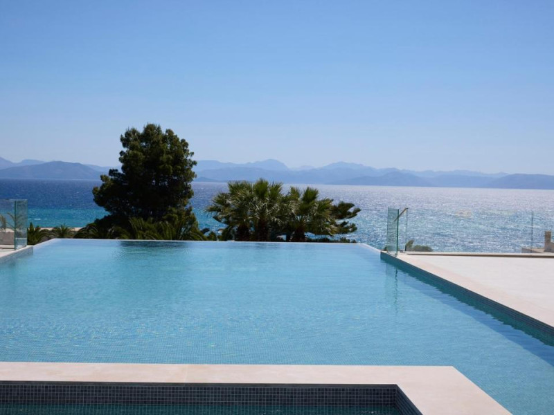 Camerele luminoase imbină designul minimalist cu elementele tradiționale cicladice, creand o atmosferă relaxantă și rafinată. Piscina infinity cu șezlonguri confortabile reprezintă punctul focal al proprietății, fiind locul perfect pentru momente de relaxare cu vedere panoramică asupra mării.