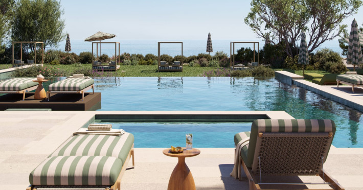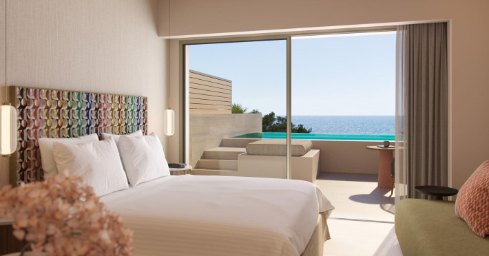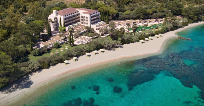 Choose from 76 beautifully appointed rooms and suites with stunning mountain or sea views. Relax by the infinity pool, paddleboard in the emerald crystal-clear waters, or unwind on the secluded pebbled beach. Sampling Mediterranean greatness from the kitchen and delicious cocktails from the bar is a must. Indulge in a body massage with a view or get an outdoor workout in. Or simply venture out on hikes, SUP boards, canoes or boats to explore the local area and discover the magic of the Posidonia marine life.