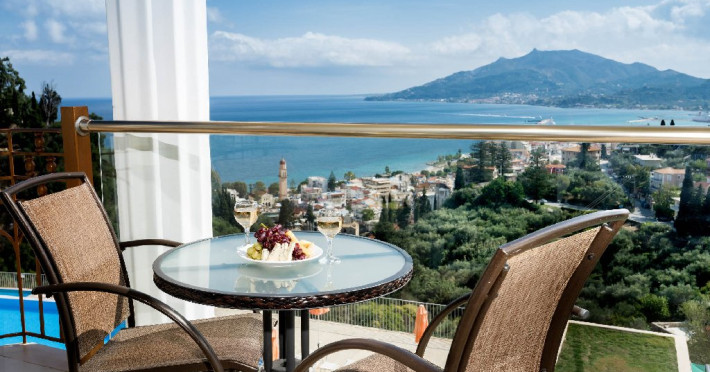Descriere: Hotelul Avalon este format din camere bine dotate si apartamente de lux. Camerele cu ofera vedere panoramica la Marea Ionic, iar unele pot gazduiti o a treia persoana pe o canapea extensibila. Suitele au propriile lor piscina privata. In plus, exista un teren de tenis in lumina zilei si o piscina dispozitia oaspetilor.Localizare: Situat pe un deal inverzit in Stavros Bochali, deasupra orasului Zakynthos, la aproximativ 1 km de plaja EOT, la 3,5 km de plaja Tsilivi si la 5 km de la aeroport.