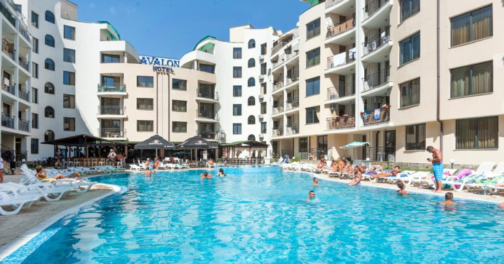 Amplasată în Sunny Beach, la 600 m de plaja Sunny, Avalon este o proprietate de 3 stele care oferă o piscină în aer liber, terasă cu șezlonguri și umbrele de soare și unități de cazare cu aer condiționat. Proprietatea are servicii de recepție cu program non - stop și închirieri auto. Se oferă acces contra cost la internet Wi-fi în spațiile publice.