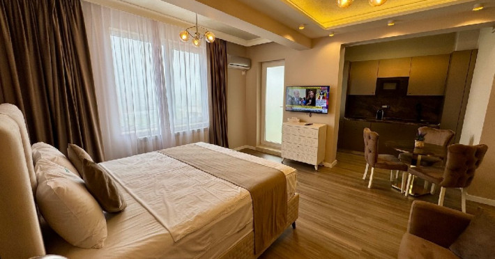 Apartamente Luxoase pentru 4 persoane cu pat matrimonial si canapea extensibila! Toate apartamentele au balcon! Livingurile sunt spatioase si luminoase si mobilierul modern, canapelele extensibile si zona de dining creeaza un ambient cald si primitor, iar