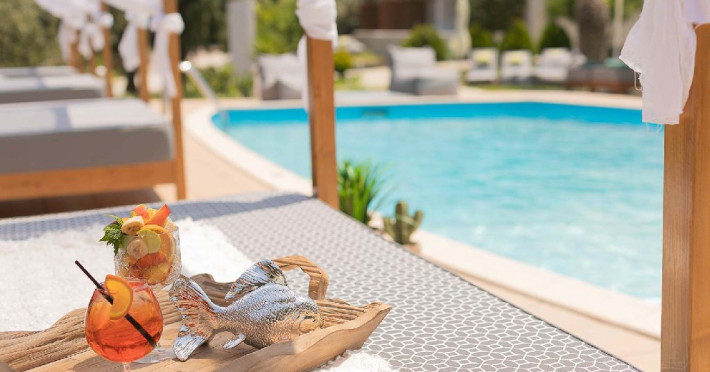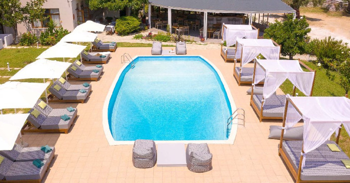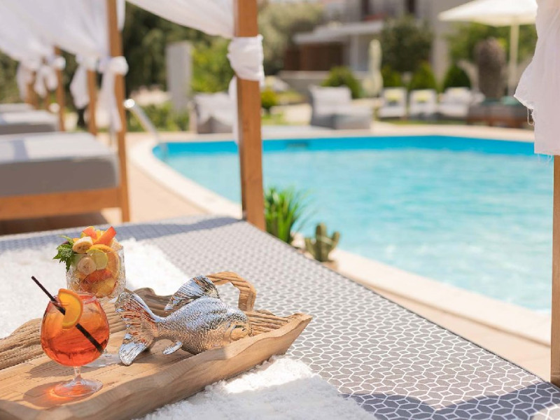 Zona piscinelor, cu terasa la soare, sezlongurile si umbrele de soare si barul de langa aceasta, va ofera o relaxare placuta in timp ce gustati din bauturile selecte sau din gustarile fine ce se pot servi la bar. Pentru distractie suplimentara, puteti merge la plaja Megali Ammos unde va puteti bucura si de sporturi acvatice nu doar de soare. Cele mai populare sunt: ski nautic, windsurfing, parasailing, pedalo, canotaj, banane si inele.