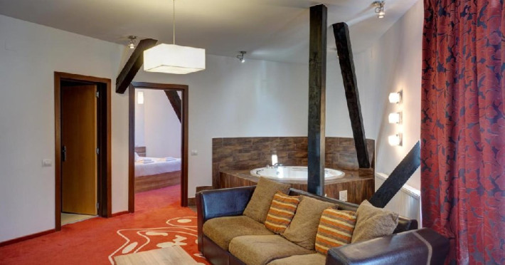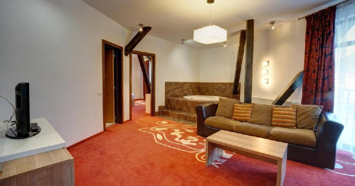 - 2 apartamente de lux. - dormitor cu pat matrimonial 151 - 180 cm si living cu canapea extensibila (2 pers), balcon, jacuzzi si grup sanitar cu cabina de dus;