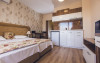 Toate camerele dispun de aer condiționat, telefon, TV prin cablu, Wi-Fi gratuit, minibar, baie cu duș și uscător de păr. Apartamentele dispun de chicinetă cu veselă și plită electrică.